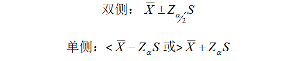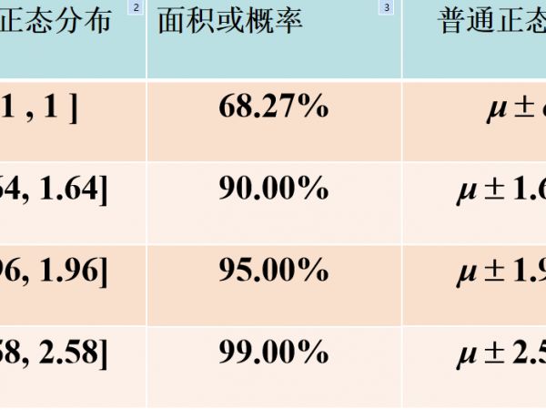 医学上所指的参考值范围是指绝大多数“正常”人的解剖、生理、生化指标及组织代谢产物含量等数据的波动范围。比如定量体外诊断试剂中的阳性判断值范围很多时候要依据样本中检测物质的参考值范围来定,这就需要利用统计学对参考值范围进行估计。下面的表格里的计算公式我们经常见到,那么1.64 ,1.96,2.58这些数值是怎么来的呢?其实就是按照我上面所说的标准正态分布换算得来的,规定了固定的面积或者概率,换算得来的X的值。大家若想一探究竟,可以网上搜一下标准正态分布密度函数公式,将0.95 ,0.99代入,算出对应的X的值,看是否是我们常用的那几个数字。