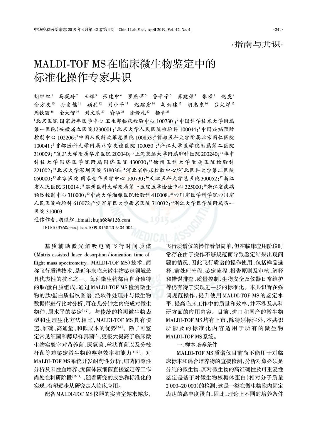 2019-5-16 19:54| 编辑: 小桔灯网| 查看: 3436| 评论: 0|来源: 中华检验医学杂志 2019年4月第42卷第4期