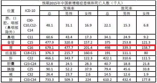 我国是胃癌高发国家,根据2015年中国癌症数据报告,我国每年胃癌预估新发病例67.9万例,死亡病例49.8万例,其发病率和病死率在恶性肿瘤中均高居第2位,我国胃癌新发病例和死亡病例约占全球42.6%和45.0%