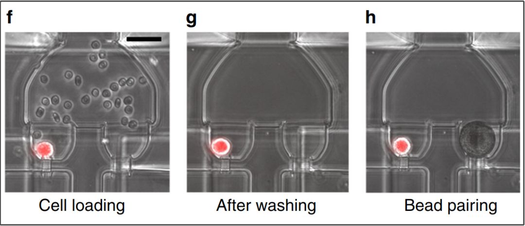 关闭所有阀门,“引爆”肿瘤细胞 最后,开启阀门,研究人员获取条形码化珠子,对每个肿瘤细胞的遗传信息分别分析,揭示其活性基因。 携带肿瘤信息的条形码化珠子“新鲜出炉”! 研究人员对这项技术进行了测试:在健康受试者的10ml血样中,加入约100个肿瘤细胞进行分析,经过验证,利用这项技术最终能有效捕获90.43 ± 6.08%的循环肿瘤细胞。 而将加载、洗脱以及条码珠杂交等过程中损失的细胞计算在内,最终用于分析的循环肿瘤细胞依然达到了72.85±2.64%!