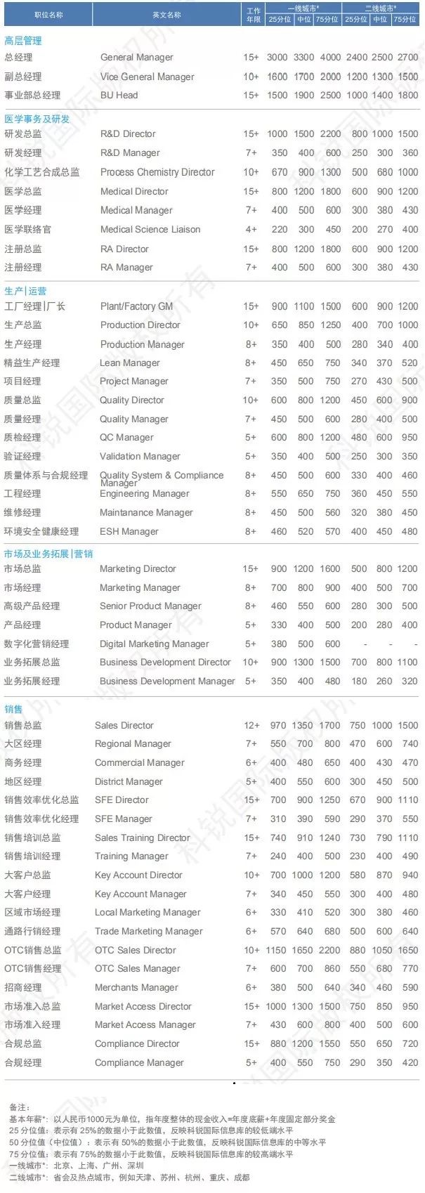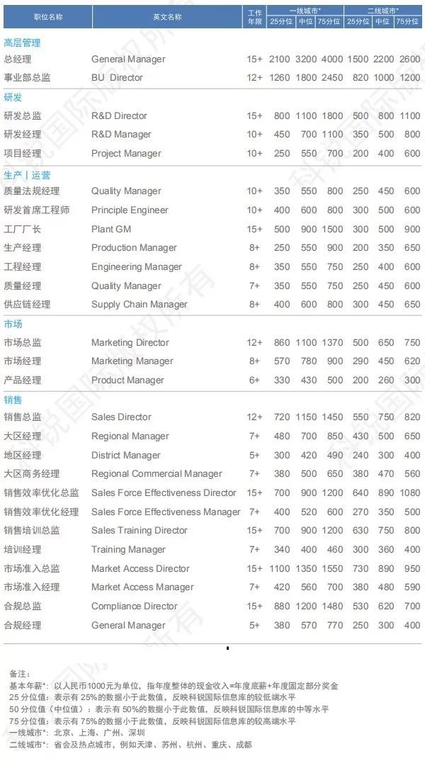 近期,科锐国际发布了《2019人才市场洞察及薪酬指南》,其中也包括医疗行业。同比2018年行业整体薪酬保持7-8%左右的稳定增长,你知道医疗行业什么岗位最挣钱吗?你有没有达到及格水平,一起来看看吧: 据了解,该榜单(总榜)制作历时75天,对近4000家企业(其中外资占比60%,民营30%,国企、政府、非盈利组织10%)及科锐国际信息库中的200,000余名中高级管理及专业候选人薪资数据进行分析,60多位行业及职能资深顾问进行点评,以下是主要内容: 医疗行业职位薪酬信息 2018-2019年行业整体薪酬保持7-8%左右的稳定增长。大型外企、国内创新公司或跨行业转型企业涨幅多在20-30%,甚至更高。创业公司或跨行业转型为了增强对高级职业经理人的吸引力度,纷纷在薪酬以外提供更多股权和期权激励。数据显示,医药与器械行业薪酬整体要略高于其他医疗行业。 职位薪酬信息 — 器械设备 职位薪酬信息 — 医药 职位薪酬信息 — 医疗服务 职位薪酬信息 — 医疗大数据 职位薪酬信息 — 个体化医疗 职位薪酬信息 — 互联网医疗 |