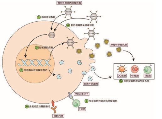 溶瘤病毒疗法是一种直接作用于肿瘤细胞的治疗方法,其原理是对天然存在的致病力较弱的病毒进行基因改造形成溶瘤病毒(Oncolytic virus,OV),利用癌细胞中畸变的信号通路(如抑癌基因失活或缺陷)选择性在肿瘤细胞中复制,导至肿瘤细胞裂解与死亡。 一、溶瘤病毒的作用机制 溶瘤病毒发挥对肿瘤细胞的杀伤作用主要通过以下途径:(1)直接裂解肿瘤细胞;(2)病毒感染的肿瘤细胞表达相关信号并释放大量细胞因子造成免疫细胞对肿瘤细胞浸润;(3)裂解的肿瘤细胞释放特异性抗原和免疫相关因子,诱发机体产生抗肿瘤免疫反应;(4)溶瘤病毒可以作为载体携带肿瘤抑制基因、促凋亡基因、抗血管生成基因、自杀基因和免疫调节基因,调控肿瘤免疫耐受微环境。 图1 溶瘤病毒参与肿瘤细胞杀伤的途径 二、历经百年发展,基因重组技术和肿瘤免疫联合治疗助溶瘤病毒重焕生机 溶瘤病毒的发展大致可分为野生病毒株发现应用阶段、基因改造病毒株研发阶段和基因插入及联合治疗增效阶段三个阶段。 1. 第一阶段:1904—1990年,野生病毒株发现应用阶段 溶瘤病毒在临床上的探索和尝试始于19世纪末20世纪初,与病毒几乎同时发现,期间陆续有关病毒感染的肿瘤患者的病情缓解或痊愈的零星报道,并诞生了溶瘤病毒概念及相关研究。 随后研究人员利用变异后的天然弱病毒株进行溶瘤治疗,水痘病毒、麻疹病毒等野生型病毒或减毒毒株短期内展现出一定的抗肿瘤效果,但天然溶瘤病毒对肿瘤细胞杀伤能力有限,易激活宿主免疫系统被清除掉,研究人员难以有效控制病毒病原性。80年代初有效的化疗药物的崛起后,溶瘤病毒研究步入低谷。 2. 第二阶段:1991—2010年,基因改造病毒株研发阶段 现代溶瘤病毒发展始于20世纪90年代,分子生物学和生物技术的发展使得重组病毒基因组改造技术逐渐成熟,溶瘤病毒在溶瘤效果、安全性及特异性方面都有了显著进步。1991年,人类首次对单纯疱疹病毒1型(HSV-1)进行胸苷激酶(Thymidine kinase , TK)敲除基因改造,癌症的溶瘤病毒治疗开始突飞猛进。1996年,基因改造的腺病毒ONYX-015进入I期临床试验。 图3 溶瘤病毒技术发展历程 图片来源:Nature、浙商证券 2003年,重组腺病毒-p53抗癌注射液(今又生)获得原CFDA批准,成为世界上首个获准上市的基因治疗癌症药物;2004年,非致病性的人肠道细胞病变孤儿病毒(enteric cytopathic human orphan virus)--RIGVIR,在拉脱维亚获批用于治疗黑色素瘤。2005年,重组人5型腺病毒注射液(安科瑞)在中国获批上市,但这些产品的临床疗效并未得到国际认可。 3. 第三阶段:2010年-至今,溶瘤病毒提效阶段 2015年10月,FDA批准携带人粒-巨噬细胞集落刺激因子(GM-CSF)的重组单纯疱疹病毒产品T-vec(Talimogenelaherparepvec, Imlygic)上市,2016年T-vec又分别在欧洲和加拿大获批上市,标志溶瘤病毒技术的成熟和对溶瘤病毒治疗癌症的正式认可。 2017年9月,《CELL》报道溶瘤病毒T-VEC与PD-1抗肿瘤药物Keytruda联合用药用于黑色素瘤,肿瘤缓解率高达62%,其中33%为完全缓解,掀起了溶瘤病毒免疫联合疗法研究的热潮。 三、溶瘤病毒以腺病毒、HSV-1(单纯疱疹病毒)和痘苗病毒临床应用较为广泛 目前在Clinical临床试验网站注册的溶瘤病毒主要有:腺病毒、柯萨奇病毒、HSV-1(单纯疱疹病毒)、麻疹病毒、新城疫病毒、呼肠孤病毒、水泡型口炎病毒、痘病毒、脊髓灰质炎病毒等,以腺病毒、单纯疱疹病毒和痘苗病毒临床应用最为广泛。其中由于腺病毒基因重组以及生产比较容易,因此临床开发广,试验开展最多,而HSV-1(单纯疱疹病毒-1)和痘苗病毒等因其基因组比较大,可加入任意的外来基因,在基因治疗上有很大优势,应用前景广阔。 表1 临床常用溶瘤病毒种类优缺比较 四、科研院所及其团队助力我国溶瘤病毒产业发展 在溶瘤病毒研发方面,我国曾走在世界前列。2005年,重组人5型腺病毒注射液(安科瑞)在我国上市,早于安进T-vec上市近10年之久,但因为种种原因没有在临床上得到广泛的应用。 目前我国涉足溶瘤病毒的企业约40家,并有多家企业进行了IND申报,相关代表公司有上海三维、武汉滨会、北京奥源和力、深圳复诺健、深圳亦诺微医药等。 表2 溶瘤病毒相关产品申报 在我国溶瘤病毒发展过程中,国内科研院所教授及其团队在当中发挥了不可忽视的作用: 1. 刘新桓院士及其团队 2001—2003年,刘新桓院士在国际上首次提出“癌症的靶向基因―病毒治疗”(Cancer Targeting Gene-Virotherapy, CTGVT),其原理是将抗癌基因加入到溶瘤病毒 (OV),其领衔的上海元宋生物技术有限公司成功开展了抗癌药物“重组人肿瘤靶向基因-病毒(ZD55-IL-24)注射液”的临床前研究。 2. 中山大学颜光美团队 中山大学颜光美教授在2014年10月6日在国际学术期刊PNAS上首次发表论文简述了M1病毒的由来及作用,此后颜教授团队进行了M1病毒安全性和有效性后续研究,并发现了M1病毒靶向杀伤癌细胞的标志物,目前溶瘤病毒M1已启动第三方安全评价,预计将于2019年进行人体临床试验。