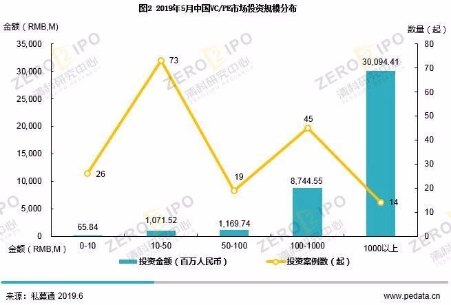 5月VC/PE市场投资案例数有所回落 大额投资案例的总融资金额超300亿