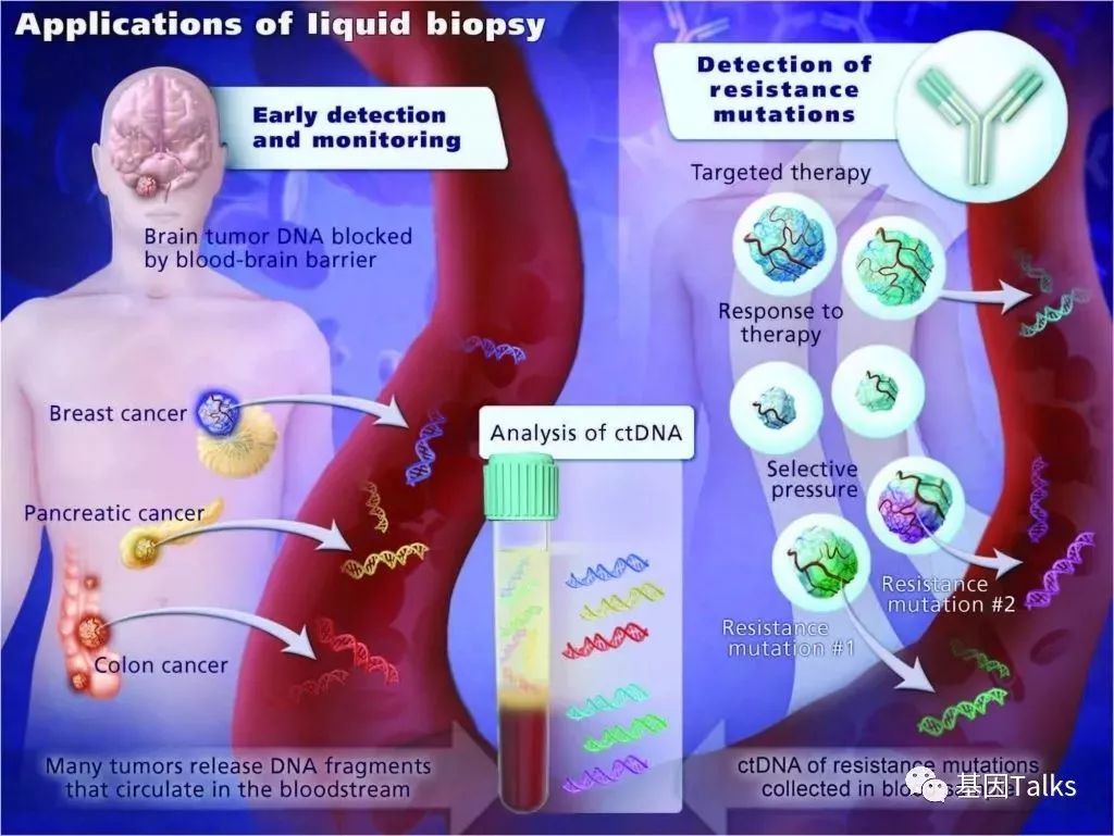 中国东北有三宝: 人参,貂皮,乌拉草; 液体活检有三宝: 核酸,细胞,外囊泡。 *核酸指 cfDNA/cfRNA(circulating free DNA/RNA,循环游离DNA/RNA,包括ctDNA/ctRNA);细胞指 CTCs(Circulating Tumor Cells,循环肿瘤细胞);外囊泡指含有小RNA,mRNA和DNA等的细胞外微囊泡,包括外泌体(Exosomes)。 ▲ 液体活检主要肿瘤来源的四种生物标志物 液体活检,顾名思义,就是利用人体体液作为标本来源检测获取肿瘤相关信息的技术,它是一种简单且非侵入性的外科活检替代方法。 美国国家癌症研究所(NCI)的癌症术语词典中,对液体活检是这样描述的: 液体活检,是对血液样本进行的检测,以寻找血液中的循环肿瘤细胞(CTCs)或血液中循环肿瘤NDA(ctDNA)。液体活检可用于癌症的早筛(癌症早筛)。它也可以用来帮助制定癌症的治疗计划(辅助诊疗),或者癌症治疗过程中疗效评估(治疗监测),或者癌症复发转移的评估(预后评估)。随着时间的推移,可以多次采集血液样本进行检测进而帮助医生了解肿瘤中正在发生的分子变化(实时监测)。 ▲ NCI癌症术语词典 肿瘤的液体活检主要包括 循环肿瘤DNA/RNA(ctDNA/ctRNA),循环肿瘤细胞(CTCs)及外泌体(Exosomes)等检测,其中ctDNA,CTCs是临床应用比较成熟且最受关注的两类液体活检靶标,其次是外泌体。所以目前肿瘤液体活检的三宝可以精化为 ctDNA,CTCs,Exosomes。 ▲ 肿瘤液体活检三宝 ctDNA(circulating tumor DNA) 是肿瘤细胞释放到血液循环系统中的 DNA,是循环游离 DNA(circulating free DNA,cfDNA)或细胞游离DNA(cell free DNA,cfDNA)的一部分。ctDNA 检测,实际上检测的是全部的 cfDNA,再从中分析肿瘤特异的基因变异。侧重于从基因层面获取突变信息,适用于癌症早期筛查,个性化用药指导,耐药性监测,预后判断等。 CTCs (Circulating Tumor Cells)是由实体瘤或转移灶释放的,进入外周血循环的肿瘤细胞,侧重于细胞病理,近年来随着单细胞测序技术的发展,CTCs 的分子图谱分析也越来越火热,CTCs也适用于个性化用药指导及治疗后的病情监测,判断预后等。 Exosomes,即外泌体,是一种能被大多数细胞(包括肿瘤细胞)分泌的微小膜泡,具有脂质双层膜结构,直径大约 30-100nm。外泌体所含信息丰富,包括RNA(miRNA,mRNA等)、DNA、蛋白质等,不仅能用于临床辅助诊断,还可以用于疾病的治疗等,未来发展空间广阔。 ▲ 肿瘤液体活检三宝介绍 就目前临床应用来说,ctDNA 是应用最广且最成熟的(较CTCs与外泌体来说),比如癌症早筛,临床用药指导,靶向药物伴随诊断,实时疗效监测,肿瘤进展及不良预后早期预警(检测微小残留病灶),耐药机制探索等。 ▲ ctDNA的临床应用方向 ctDNA检测相对于常规传统侵入式组织活检具有非侵入性,患者依从性好,异质性低,可反复取材等优势。并且ctDNA检测应用于NSCLC EGFR靶向治疗伴随诊断已被FDA批准并被NCCN写入指南;ctDNA检测应用于NSCLC EGFR T790M靶向治疗伴随诊断已被NMPA批准上市。 ▲ ctDNA作为“液体活检”比传统活检有几个潜在的优势 ctDNA检测是克服肿瘤时空异质性的唯一方案,NGS与液体活检的结合可帮助呈现肿瘤的时空进化全景,给患者不断带来新的治疗希望。 ▲ ctDNA是克服肿瘤时空异质性的唯一方案 ▲ 患者的克隆演化图:ctDNA不断带来的治疗新希望 ctDNA的检测样本类型有多种,并不是所有的肿瘤患者都推荐使用血液进行检测。考虑到患者病灶累及部位、转移情况的复杂性、不同体液标本的特征,应优先选择液体活检靶标最易检出部位标本(例如广泛腹腔/盆腔转移患者可优选腹水;中枢转移性肿瘤可优选脑脊液等)。 ▲ 体液标本选择一般规律 目前,肺癌的大量“必检基因”,如 EGFR、ALK 、ROS1、NTRK等已成为肺癌诊断中的常规检测项目,用于指导靶向用药的选择(NTRK写入2019非小细胞肺癌NCCN V.3指南)。但约 30% 的晚期NSCLC患者没有任何组织样本可用,能够快速有效的解决这些问题,就是ctDNA检测。到目前为止,ctDNA 是唯一被官方批准的可临床应用于 NSCLC 患者的样本。 ctDNA很火, 那么,它迎来黄金时间了么? 借用最新 2019 ASCO 的回答: 还没有,但快了! 因为它的标准制定, 定量、稳定可重复检测, 严格验证及成本效益都还需要解决。 为了解我国临床实验室ctDNA基因突变检测的开展现状及质量状况,国家卫生健康委临床检验中心开展了该项目的室间质量评价计划,看看目前国内各临床检测实验的ctDNA检测能力到底怎么样? ① 2019 ctDNA室间质评:本次质评由国家卫生健康委临床检验中心和澳大利亚皇家病理质控中心联合开展,本次室间质评共5个样本,突变等位基因百分比设置在0.1~10%之间(本次室间质评的检测下限是根据大多数实验室自我宣称的检测下限0.1%~0.5%来设定的)。 ② 2019参与ctDNA检测实验室:我国共有来自19个省(市、自治区)的146个实验室参加(北京23家,广东21家,江苏20家,上海19家...),各实验室使用自己的NGS panel进行检测,并报道检出的突变信息即可。 ③ 2019 ctDNA室间质评日程安排: ④ 2019 ctDNA室间质评结果: 146家实验室报名参加,其中,16家未回报或未按时回报结果,1家检测方法学不符,2家ctDNA检测下限回报不清,1家使用的检测panel未包含检测突变点,最终有效结果为126个。其中1家实验室出现了核酸提取低于上机检测要求的回报结果(125家核酸提取合格,但有5.27%的实验室提取率低于16.7%,即100ng以下,室间质评提供的cfDNA 在600ng左右,临床样本的cfDNA量通常比质评的cfDNA含量更低,则失败的可能性更大)。 125家实验室有效回报了检测结