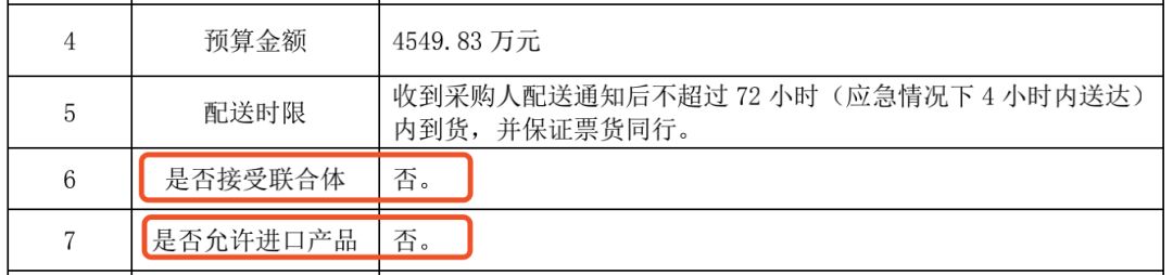 另外,据招标文件第三章投标人须知里显示,在是否接受联合体与是否允许进口产品一栏中,均为否。