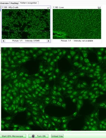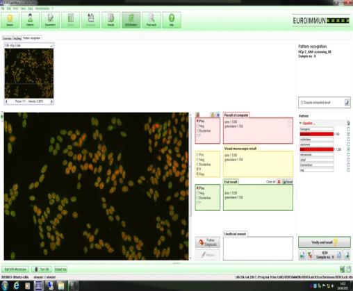 作者 穆红 天津市第一中心医院检验科 概述 自身抗体检测是诊断自身免疫性疾病的重要标志,通过实验室检测自身免疫病相关特征性抗体谱有助于自身免疫病的早期诊断、判断疾病的活动性以及疗效观察,指导临床用药。 1957年Friou发明了间接免疫荧光法(IIFT,以下简称“荧光”),从此成为了广泛应用的诊断结缔组织病的实验室方法。其操作方便、成本便宜,有着较高的灵敏度和特异性。1975年,HEp-2细胞的引入用于检测血清中的 ANA,目前仍被誉为ANA检测的金标准。目前检测基质已扩展至各类动物组织器官,用于检测各种类型的器官特异性自身免疫性疾病。 伴随着实验室标本量的增加,质量管理要求的提升,智能化信息化水平的发展,间接免疫荧光方法学也有了新的需求和挑战。对于实验操作者、实验室管理者、产品及服务提供商,均需要有更新的认识,创新的思维,以及全新的跨越。 间接免疫荧光法检测现状 荧光方法学检测自身抗体应归属于形态学检验范畴,对于操作人员判读技术水平要求较高,要求实验操作人员具有多年的荧光核型判读经验,且不断更新知识水平,不断学习新发现核型的判读要点。大型三甲医院检验科每天会接纳大量的自身抗体检测样本,且往往需要在第二个工作日给出检测结果,使得操作人员不得不长时间重复在荧光显微镜下判读的过程,且由于不同操作者水平存在差异,同一份样本由不同操作者判读,往往给出不同结果,因此对于自身抗体检测实验室的标准化建设,仍然面临不少的挑战。 荧光智能化检测的原理 临床实验室对自身抗体检测的智能化需求越来越强烈,如人工智能加入模拟检验科医生判读核型、检测流程高度自动化等方面。近年来有IVD生产厂商推出自动化显微镜结合AI技术进行自身抗体荧光自动化判读仪器,逐步实现了间接免疫荧光法操作、判读过程的自动化,大大降低了检测结果对人工经验性的依赖,使得荧光检测结果精确性和稳定性有了飞跃性的提升。 对于科室管理来说,自动化程度、检测通量的提升能够满足科室日益增长的检测需求,更重要的是,智能化技术在检测结果鉴别中的应用对于实践过程中TAT的降低,实验操作过程的标准化,更加具有创新意义,给科室的质量管理带来了实质的变化。 毫无疑问,自动化平台可以解决不同人员之间操作的差异性,但智能化判读的准确性如何保证呢?前提是具备庞大的数据库以及模拟人脑的算法基础。算法投入临床使用时需要根据医院的判读标准完成调试。专业判读人员对算法预设工具提供的数百张图片进行核型和滴度判读,由该工具计算生成各个核型阴阳性的基础临界值并写入算法。再收集数百例已知核型和滴度结果的样本,样本分布为一定比例的阴性及阳性样本,阳性中各个核型和滴度进行平均分配,通过软件算法的多次判读及人工审核,软件不断地重复算法的学习和调整过程,直至该批样本的自动判读结果与人工审核结果全部达成一致。 从实际操作来看,智能化实验管理软件可以连接管理整套的间接免疫荧光自动化仪器,通过二维码识别来自动存储载片上的病人信息,并与LIS实现双向通讯。因此,使用扫码模块识别荧光片上的二维码,加载病人样本信息,LIS可以从自动化设备直接接收到信息并将方案传输给实验管理软件,完成自动化制片后,全自动判读设备自动扫描荧光片的二维码,再次识别病人样本信息,整个实验流程不需手工记录样本信息,病人之间的信息混乱可以完全避免。 自动化判读软件具备自我学习功能,人工审核后的判读结果可以反馈到算法进行深度学习。对于算法的升级,智能化软件能够学习医院的判读习惯,定义阴阳性和各个滴度区间的临界值;学习对核型结果的判读,不断的增加新的算法规则,丰富和完善类神经网络,提高算法的准确性。因此自动化判读能够在医院工作过程中持续不断的升级算法,使机器与人工判读结果趋于一致。在实验室常规检测情况下,仪器判读与专业人工的整体符合率能够达到90%以上,对样本的阴性筛查准确率更是达到了100%。 因此,全自动智能化设备的应用,不但解放人工,间接免疫荧光操作的精确度和重复性也进一步提高。另外,在荧光检测结果判读这部分,智能化判读能够避免每家医院判读标准的不一致导至结果差异而无法做到检测结果各家医院通用,在科室同样的配置下,能开展更多项目的检测,提高整体工作效率,提升科室的综合检测能力。 荧光智能化检测的应用 智能化技术设备的应用,能给临床提供更全面的结果信息,进一步提升临床精准诊断的效率,主要体现在以下几个方面: 原先的荧光结果的人工判读,实验室一般最多提供2种核型结果,即主要核型与次要核型,对于荧光滴度结果的报告,则受限于显微镜类型或光源强弱,更主要的是人眼的能力和经验的差异,同一份标本不可避免的得出不同的滴度。而智能化设备能客观识别所有核型判读结果及对应的滴度,利用其精密庞大的信息数据库,其复合核型结果可以提供3种,甚至3种以上,这给予临床医生更多的病人检测信息参考。 人工判读的工作量也是一个大难题,实验人员耗费大量时间在显微镜旁,且工作效率不高。采用智能化自动化设备后,对于结果的审核,大多数的阴性样本,智能化软件具备阴性初筛功能,可快速对阴性样本结果进行一键确认,而少量的阳性样本,智能化软件将自动