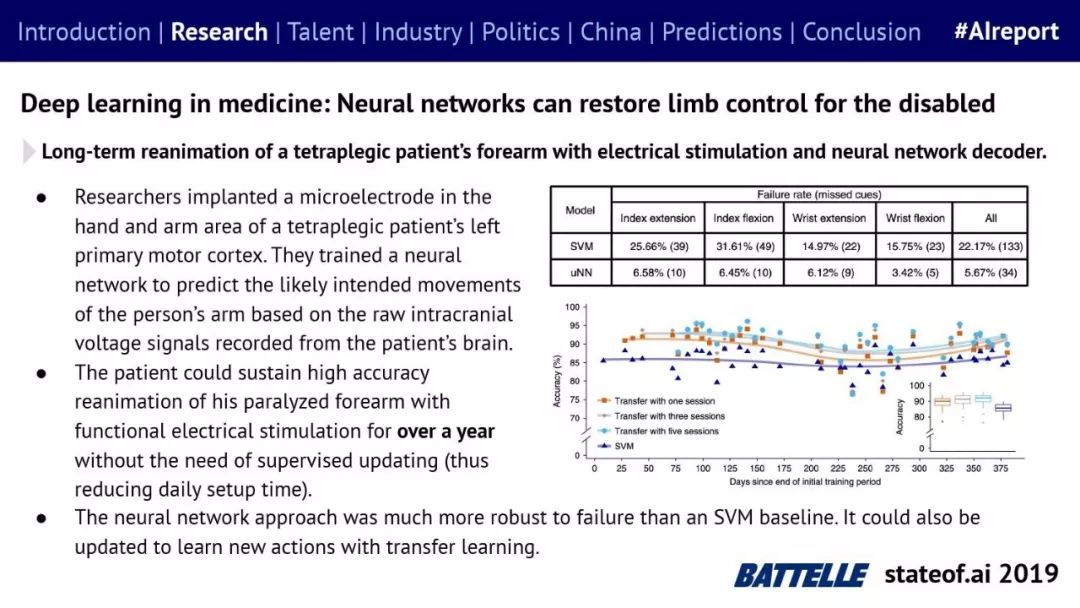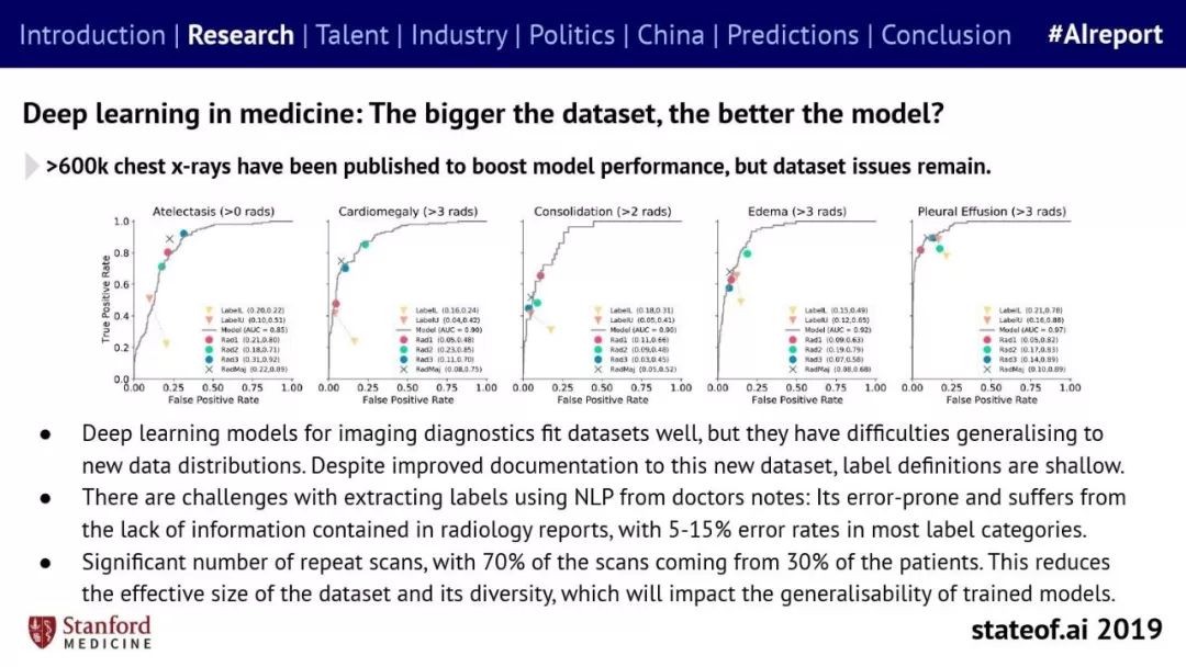 Stateof.ai发布了“2019年AI报告”。 面部识别用户体验:减少日常消费者用例的摩擦 在中国,人脸识别技术已经开始应用。人们在店内刷脸支付,在机场获得航班详情等。 中国网络巨头扩展到农牧业 阿里巴巴和京东都进入了畜牧业和昆虫养殖业,包括养鸡、养猪和蟑螂养殖。并在养殖过程中利用人工智能收集和分析数据。 中国企业AI研发支出快速增长,但总额仍然落后。中国企业的研发支出同比增长34%,但美国企业仍占全球科研支出的61%。 从数据来看,中国芯片销售和采购在快速增长,但是购买远高于销售。 在过去的3年里,一些中国工业企业40%的劳动力已经实现自动化。这在一定程度上是因为中国的机器人年装机量自2012年以来增长了500%(欧洲为112%)。但是,目前还不清楚这些安装的机器人在多大程度上运行AI软件,或者对AI的普及做出了贡献。 京东的上海配送中心使用自动化仓库机器人,每天组织、拣选和发货20万份订单,该设施仅由4名工人管理。京东的仓库数量和面积同比增长45%。 2018年有33家中国公司在美国交易所进行IPO,(比去年同期增长2倍),接近2010年的历史最高水平。2018年,美国共有190宗IPO。 中国团体拥有最多的AI专利,但2017年只有23%是“发明专利”。 91%的5年设计专利和61%的5年实用新型专利被放弃。相比之下,维护费用按照5年的美国专利的85.6%支付。 中国已经发布了比美国更多的机器学习方面的研究。 |