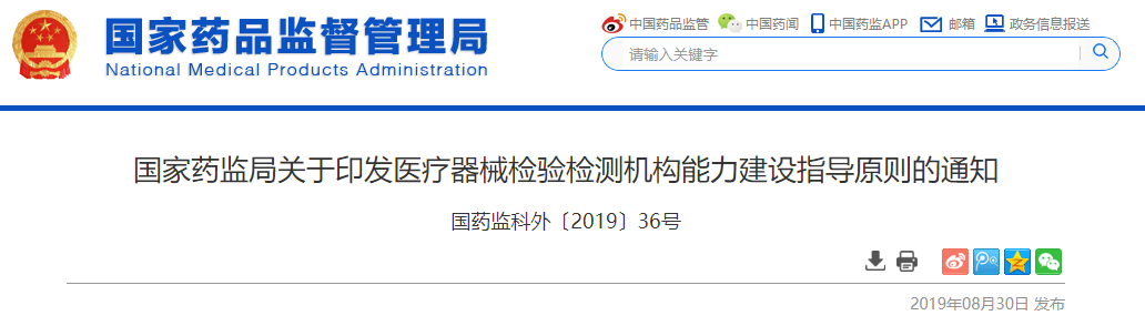 各省、自治区、直辖市药品监督管理局,新疆生产建设兵团药品监督管理局,各有关单位: 医疗器械检验检测体系是医疗器械监管体系的重要组成部分,按照《“十三五”国家药品安全规划》及《医疗器械检验检测中心(院、所)建设标准》(建标188-2017)等文件要求,为加强对医疗器械检验检测机构在能力建设方面的指导,提升检验检测能力,国家药品监督管理局组织制定了《医疗器械检验检测机构能力建设指导原则》,现予以印发。