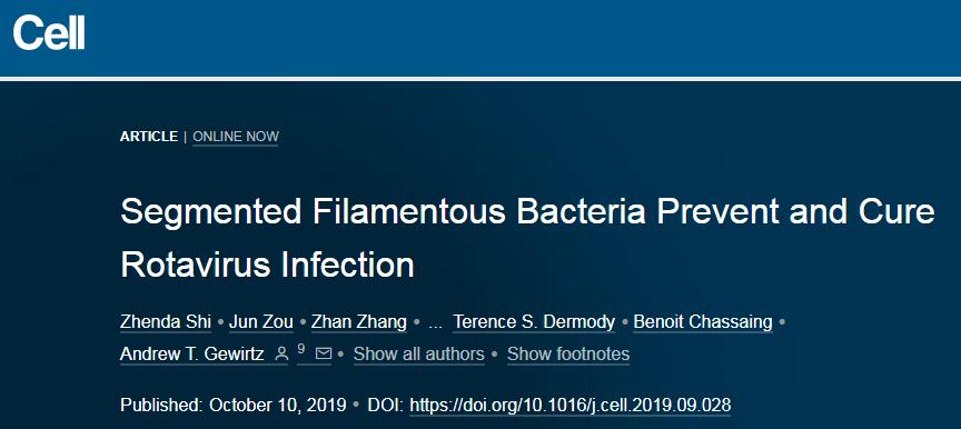 近日发表在《Cell》杂志的一项研究表明分段的丝状细菌(SFB)足以保护小鼠免受轮状病毒感染和相关的腹泻,或可解释为什么轮状病毒在某些人中导至严重的威胁生命的疾病,而在另一些人中仅引起轻度疾病。并提示针对轮状病毒感染的新预防及治疗措施。
