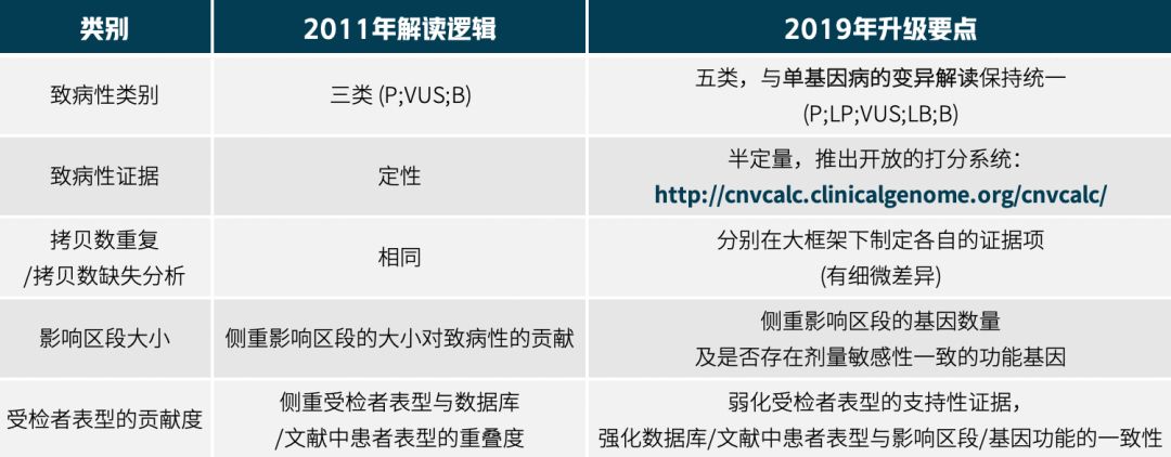 美国医学遗传学与基因组学学会 (ACMG) 和美国国立卫生研究院 (NIH) 资助的临床基因组资源中心 (ClinGen) 于2019年11月6日在Genetics in Medicine杂志联合发布适用于产前/产后的染色体拷贝数变异 (CNV) 解读和报告的技术标准2.0,该标准是2011年ACMG推出CNV解读指南的一次升级,本文主要从解读和报告两方面简单介绍本次升级要点,并对CNV和单基因遗传病变异解读的一致性进行了简要摘录。 发表时间: ACMG Technical Standards Published: 06 November 2019 权威性: ACMG和ClinGen达成的共识建议 临床适应症: 神经发育障碍和/或多种先天性异常患者,以及超声异常胎儿等。(染色体拷贝数变异是发育迟缓、智力障碍、多种先天性异常和胎儿超声异常的常见病因) 方法及结果: 通过各自临床实验室的CNV及其分类情况讨论确定致病性证据项设置及各自权重,开发了基于半定量的评分系统,通过实际病例数据进行验证和参数调整,对打分系统进行迭代升级,最后用114个CNV(58个缺失,56个重复)进行环境/人员变量的外部测试(不同环境的人员操作,使用评分体系/不使用评分体系,分析评估一致性)。使用评分系统与不使用评分系统相比,致病性结果的一致性有所提升。 结论: 建议各实验室将该标准作为统一的参考,不仅可以提高实验室对CNV结果分析的一致性,也能让CNV的分析变得更规范和透明。 局限性说明: 不适用于肿瘤CNV的分析; 是否遵守该标准是自愿的; 并不确保每一个分析结果都符合临床,也不是所有的CNV都适用 (任何一种计算模型都不可能适用所有的应用场景)。 证据项: 覆盖区域是否包含功能元件、与剂量敏感性基因/区域的重叠范围、覆盖基因计数、文献报道/公共数据库/实验室数据库支持证据、患者遗传模式和家族史评估。 CNV解读要点: 文末点击“阅读原文”可前往ClinGen CNV致病性解读计算器。 致病性解读的一致性: ▲ 不同的检测技术和机构:基于NGS平台的CNV分析已经在全基因组、全外显子组及基因panel的测序中被广泛应用,此外,不同的检测技术也可能检测出不同片段大小的CNV,越来越多的新发/罕见变异被检出,因此从染色体水平的缺失重复到基因外显子水平的缺失重复,也迫切需要一致性的致病性判断逻辑。 ▲ 表型正常和患者人群:跟单基因病的变异解读保持一致,让致病性判断逻辑同时适用表型正常人群和临床患者人群。此外,数据库和文献的证据分类更加精细,也更强调覆盖区域/重要基因与文献中患者表型的一致性,而受检者本人的临床表型/家族遗传史等证据分值则有所降低 (受检者本人的表型重要性有所下降)。 ▲ 染色体与单基因病解读规则:本次CNV评分系统中涉及的证据类别、专业术语及变异分类,也与单基因病保持一致。 对于证据强度,虽然基于贝叶斯框架对各证据项强度的具体分值并未通过统计学计算得出,但普遍认为0.90分或更高的证据被认为是“非常强”,获得0.45分的证据被认为是“强”,0.30分被认为是“中等”,0.15分或更低分被认为是“辅助”证据。 对于致病性判断,从2011年的ACMG的CNV解读指南的致病、意义未明、良性,调整为与单基因病的变异解读类似的5档:分值≥0.99分是致病 (P)、0.9≦分值≦0.98是可能致病 (LP)、分值≦-0.99是良性 (B)、-0.98≦分值≦-0.90是可能良性 (LB)、其他分值都是意义未明 (VUS)。 CNV报告标准: ① 报告内容应该包含CNV的大小、分类类型、分类标准。良性/疑似良性的CNV是否提示在报告中,也需在检测中加以说明。 ② CNV命名应该遵守国际人类细胞基因组命名系统 (ISCN) 或人类基因组变异学会 (HGVS) 推荐的命名法。 ③ 报告中应尽量说明CNV所涉及的基因,对于影响较大的CNV,可以列举被公认的综合征疾病和/或临床相关的基因名称,不确定影响大小的CNV,建议尽量说明该区段所有进行过功能验证/鉴定的基因名称。如果报告中不能列出所有影响基因,建议提供基因总数和可能与临床相关的基因名称信息。 ④ 报告中的CNV变异,应该明确说明变异的分类及相关支持证据。 ⑤ 涉及ACMG推荐报道基因的意外发现CNV,建议在充分知情同意基础上才进行告知。 ⑥ 检出包含常染色体隐性遗传或X连锁隐性遗传疾病相关基因的CNV区段,建议实验室有针对性在补充报告中报道,也可以选择在知情同意后不报道。涉及以下3种情况的CNV携带建议进行报道: a.功能缺失是明确的致病机制,检出相关基因的CNV缺失携带可以提示受检者或其亲属进行遗传咨询和生育指导,特别是对于发病率高及/或便于筛查的疾病基因更需要进行报道。 b.CNV包含的基因,其疾病症状与受检者临床主诉比较相符。该CNV提示给受检者后,可以指导医疗机构进行相关基因其他变异类型的补充检测。 c.女性受检者中检出的X连锁隐性遗传相关基因的CNV,可以提示受检者进行遗传咨询和生育指导。此外,鉴于X连锁隐性遗传疾病的女性携带者可能会有轻微临床症状,提示给受检者也是有利于可能涉及的疾病管理和治疗。 参考文献: *CNV的2011年变异解读指南:Kearney H M, Thorland E C, Brown K K, et al. American College of Medical Genetics standards and guidelines for interpretation and reporting of postnatal constitutional copy number variants[J]. Genetics in Medicine, 2011, 13(7): 680. *单基因病的变异解读指南:Richards S, Aziz N, Bale S, et al. Standards and guidelines for the interpretation of sequence variants: a joint consensus recommendation of the American College of Medical Genetics and Genomic