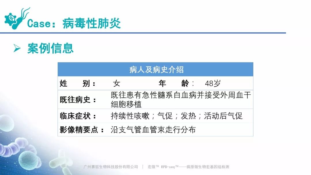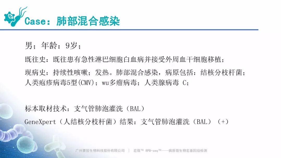 Case:肺部混合感染,赛哲特异性检出结核分枝杆菌(滑动图片) Case:病毒性肺炎,赛哲特异性检出人类腺病毒 B(滑动图片)