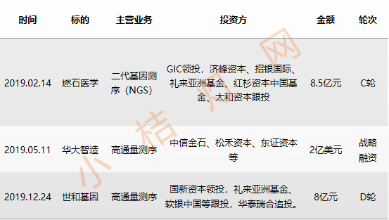 据统计,2019年体外诊断行业发生的融资事件数量不足2018年的50%,其中3笔超过8亿元的融资均发生在高通量测序领域,表现亮眼。