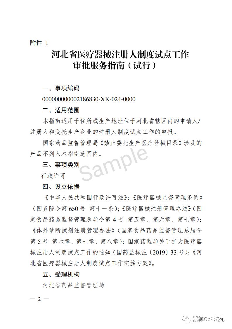 附件:河北省医疗器械注册人制度试点工作审批服务指南(试行)