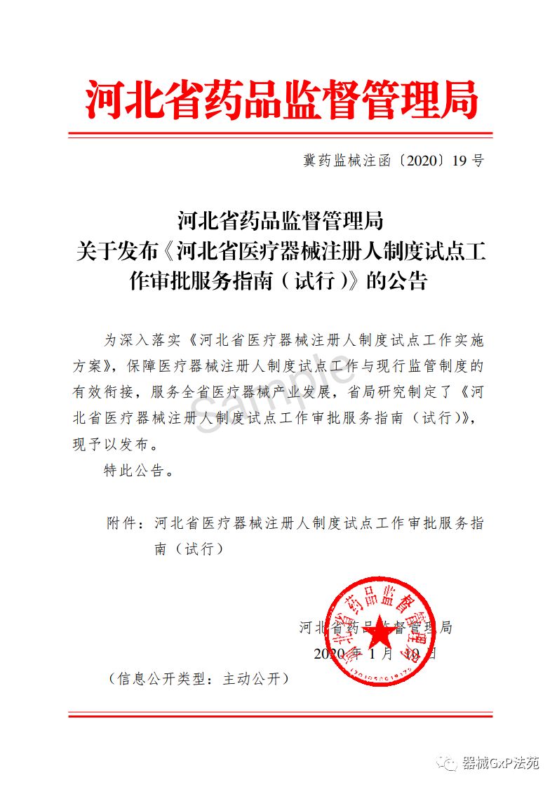 为深入落实《河北省医疗器械注册人制度试点工作实施方案》,保障医疗器械注册人制度试点工作与现行监管制度的有效衔接,服务全省医疗器械产业发展,省局研究制定了《河北省医疗器械注册人制度试点工作审批服务指南(试行)》,现予以发布。