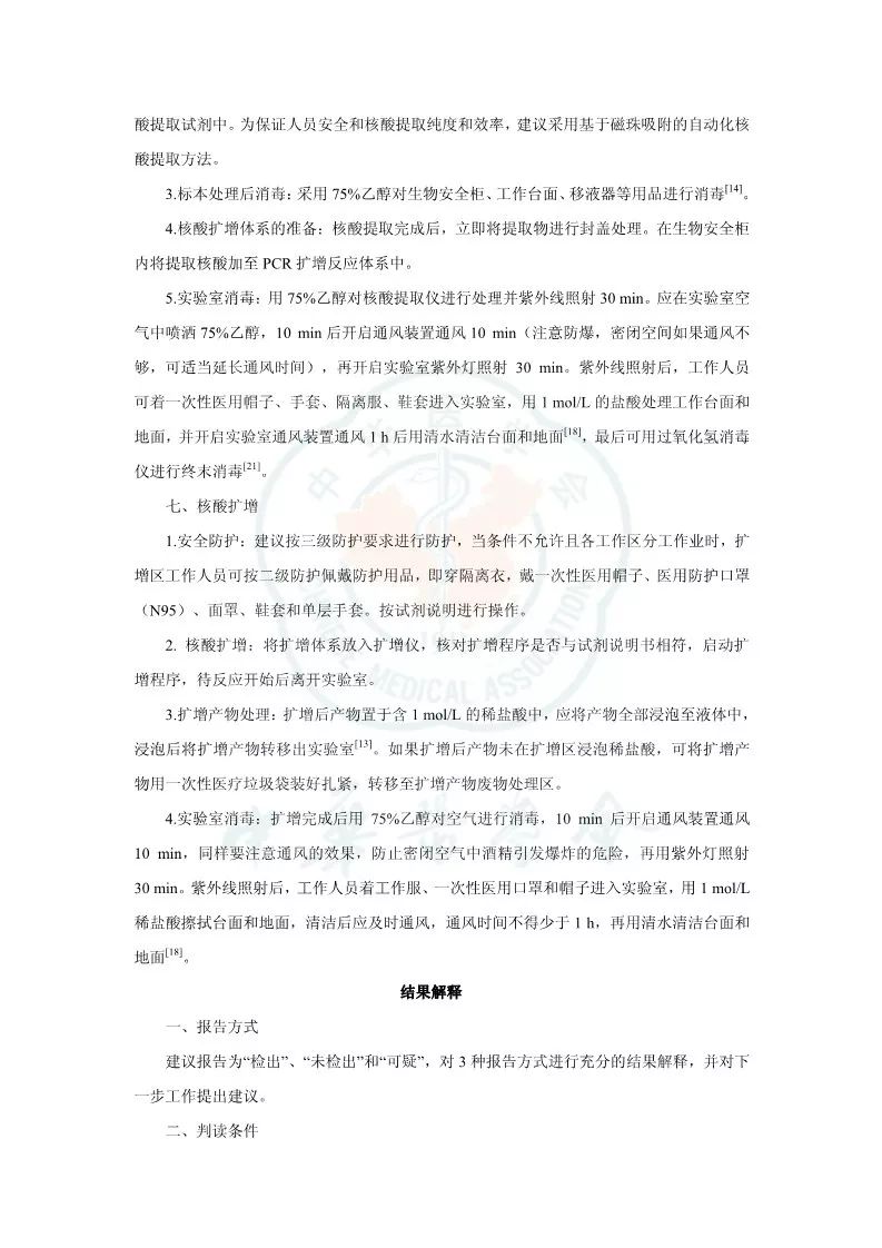突发新型冠状病毒(2019 novel coronavirus,2019-nCoV)肺炎疫情以来,感染病例快速上升。随着疫情的发展和防控力度加大,全国各地乃至境外均有病例报道,及时对急重症及疑似患者进行诊断需要快速有效的方法,病毒核酸检测可为诊断提供直接证据。核酸检测过程中因对病原体的传染途径和致病力尚未完全明确,工作人员在核酸检测过程中存在较大的感染风险。此外,因为 2019-nCoV 基因结构与一般 RNA 差别较大,因此检验流程、检验质量和生物安全均需要有一定的指导。本共识在参阅国家卫生健康委员会相关文件、查阅文献、咨询重疫区相关专家的基础上进行编写,以对实验室检测工作提出有指导性的建议,本共识适用于从事 2019-nCoV 核酸检测(如RT-PCR方法)的所有实验室。 参考资料: |
