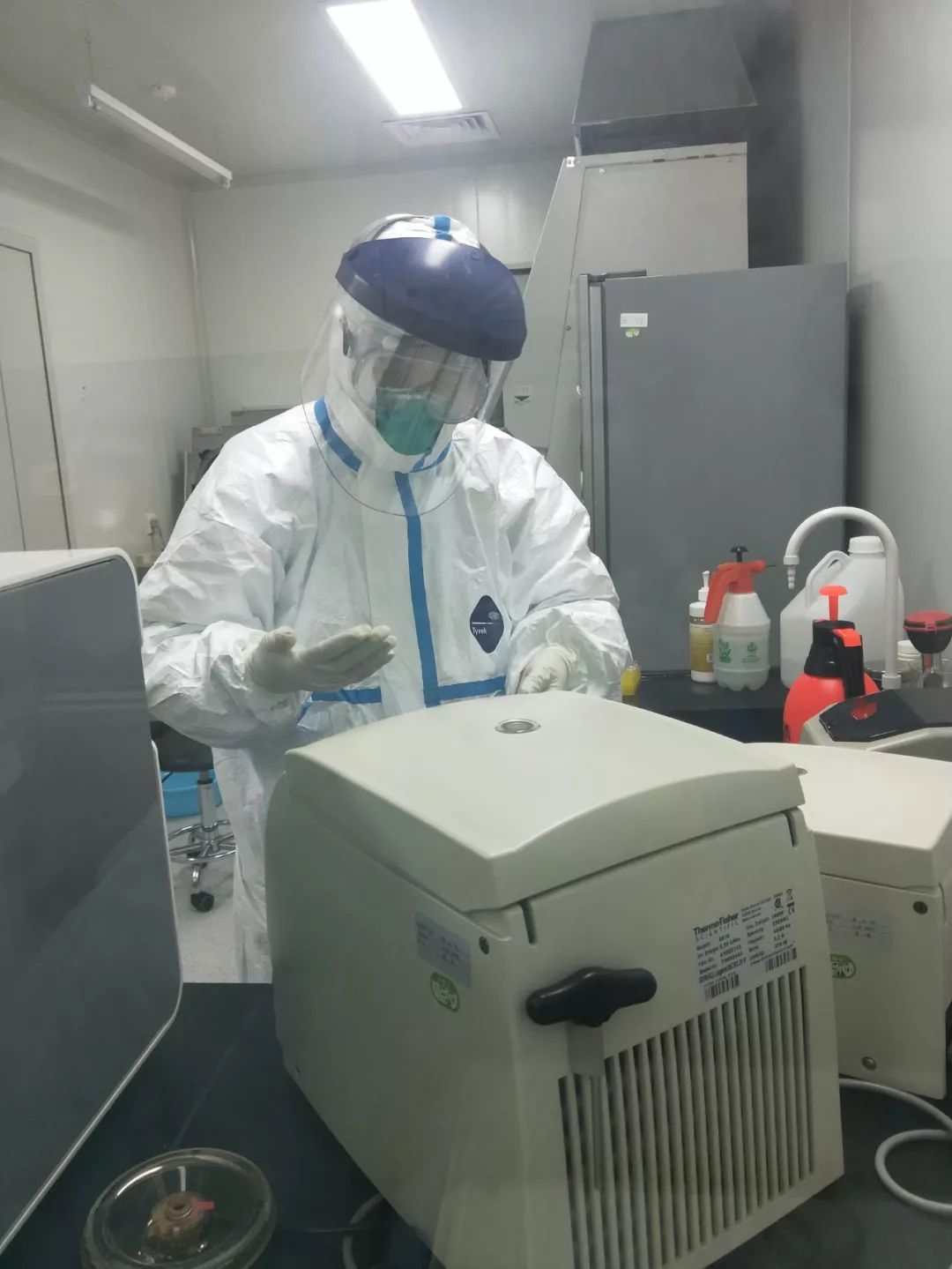 除了大家所熟悉的临床医生,还有一群人,也在跟病毒争分夺秒,他们就是检验人员。 新型冠状病毒核酸检测几乎是与病毒“零距离”接触,但这个工作是确诊患者是否感染的最快速有效手段,对早发现早诊断起到十分重要的作用,是抗击疫情的一线战场不可或缺的“利剑”。 他们虽然不直接接触患者,但幕后的工作同样面临危险。不仅要对感染者或疑似感染者的样本进行各种分析,还要对检验过程中产生的高危险废物进行后处理,以保证生物安全。 今天,就让我们通过两位检验人员,走近这把“抗疫利剑”! 陈松是浙江杭州市第三人民医院检验科的主任技师。1月30日晚上9点,临近下班的他接到领导的支援通知。他立即答应下来,第二天一早就直奔西湖区疾控中心。 为了让医院在送出病毒样本后12小时内得到检测结果,西湖区疾控中心连同杭州市属医院的增援力量在内,共有9名检验技师分3个小组,日夜轮岗,全力保障检测效率。