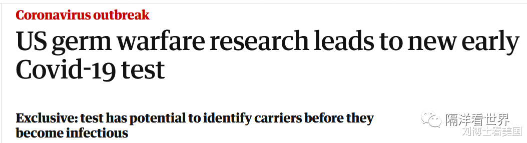 据英国《卫报》独家报道,为美国军方工作的科学家开发了一种新的Covid-19测试,可以在新冠病毒携带者具有传染性并开始传播病毒之前,将他们识别出来。 英国《卫报》相关报道 这可能是一项重大突破!项目协调员希望,这种基于血液的测试,能够在人感染后24小时内发现病毒的存在。这是在感染者出现症状之前,也是感染者被认为能够将病毒传给其他人之前好几天。和目前已有的病毒测试相比,这也大约要提前四天左右。 该测试源自美国军方国防高级研究计划局(US military’s Defense Advanced Research Projects Agency,简称Darpa)设立的、旨在快速诊断细菌战或化学战中毒的项目。大流行爆发时,急忙将其研究重点加以改变。新的测试有望在一周内获得美国食品和药物管理局(FDA)的紧急使用批准(EUA)。 Darpa的生物技术办公室负责人布拉德·林根森(Brad Ringeisen)博士对《卫报》说:“这一发明填补了全球的诊断空白,因为它还将填补感染后期阶段的一些测试空白。” 他还表示,如果获得FDA的批准,它就有可能成为“绝对的游戏规则改变者(absolutely a gamechanger)”。 布拉德·林根森 尽管随着世界各国政府放松封锁,在感染者具有传染性之前经过检测将他们筛查出来,将提高测试与(密切接触者)追踪工作的效率。但是,Darpa很谨慎地表示,必须等到FDA批准后,该测试才能进入实用阶段,以寻找证据来证明其可以最早在什么时候检测出病毒。 纽约西奈山医院研究团队的负责人斯图尔特·希尔冯(Stuart Sealfon)教授在一封电子邮件中说:“研究的目的是开发针对Covid的早期宿主血液反应诊断测试,并对其进行验证。” 斯图尔特·希尔冯 他说,这种测试方法测试的是人体与Covid-19进行对抗时的反应。它所得到的测试结果,要比目前寻找这种病毒本身的鼻拭子测试更早。他告诉《卫报》:“由于感染后(人体)会立即产生针对感染的免疫反应,因此有望通过Covid的识别标志,更早地和更敏感地对(是否存在)Covid感染做出诊断。” 测试开发背后的研究最终将被公开,来自西奈山、杜克大学和普林斯顿大学等医学院的合作团队有望在线发表(他们的研究成果),从而使世界各地的科学家都可以尝试类似的方法。 新冠病毒电子显微照片 如果获得紧急使用批准,则将于5月15号之后开始在美国推出该测试。不能保证能够获得批准。在美国多个州放松封锁之际,人们担心可能会出现第二波疫情爆发,需要对此加以控制。在这个时候,Darpa的这些科学家对(该测试)可能(带来的)影响,有着热烈的期待。 埃里克·范·吉森(Eric Van Gieson)博士说:“我们都非常激动。我们希望尽快进行这项测试。同时,与其他可能希望在(他们)本国进行测试的人分享。”范·吉森去年在Darpa建立了旨在诊断出生物战受害者的表观遗传学表征和观察(Echo)计划。该计划目前已将其研究重点转向Covid-19。 表观遗传学(epigenetics)是与遗传学(genetics)相对应的概念。遗传学是指基于基因序列改变所致基因表达水平变化,如基因突变、基因杂合丢失和微卫星不稳定等;而表观遗传学则是指基于非基因序列改变所致基因表达水平变化,如DNA甲基化和染色质构象变化等。 能够在病毒携带者具有传染性之前通过测试检查出病毒携带者这一希望,是建立在先前对其他病毒所进行的研究基础之上的。但是,希尔冯表示,对于Covid-19来说,这仍然是“未知数”。 Darpa的Logo 范·吉森说:“我们有证据表明,在最初的24小时内,流行性感冒和腺病毒会被检测出来。证明(针对)Covid-19的测试也能做到这一点的工作,我们还在进行中。也就是说,在获得紧急使用批准之后,我们应该很快就能够知道(结果)。” 他认为,美国有潜力每天进行多达一百万次的测试。刚开始的时候,在五月每天进行十万次测试。 该测试将让感染者在具有传染性之前就将他们进行隔离并切断传播链,变得更为可能。它还可以让接触了Covid-19传播者的人需要隔离的时间大大缩短,使他们能够在几天之内回到工作岗位。 该项目参与方之一、美国加州生命科学技术公司Fluidigm的首席执行官克里斯·林斯韦特(Chris Linthwaite)说:“它可能会有特别高的需求。”他相信,经常测试可以帮助对返回办公室、仓库和工厂的员工进行管理。 克里斯·林斯韦特 Darpa的专家还认为,有潜力更好地保护医护人员和其他从事高风险工作的人员,以及其他一些处于相对自我封闭的或隔离的社区(如疗养院、监狱或船只)的人。 和用于检查怀疑感染了新冠病毒者的鼻拭子一样,该测试使用聚合酶链反应(PCR)检测仪。范吉森说:“这是一个简单的调整,基础设施已经存在。” 像病毒检测一样,新的血液检测也是寻找一种称为RNA的分子。在这种情况下,它是信使RNA(mRNA)。希尔冯说:“(寻找的)目标信使RNA是(人体)对病毒感染免疫反应的一部分。由于Covid-19的存在,信使RNA的表达水平确实会出现变化。了解免疫反应是战胜Covid-19的关键。” Covid-19的潜伏期大约为五天。在此期间,病毒携带者被认为是具有传染性的。当前的鼻拭子测试,也要大约在感染者感染病毒五天后才能检测到病毒。范·吉森说:“它们(病毒)做它们该做的,只是它们不告诉你,某人病了。这个大概要在四天后才会(知道)。” 研究表明,该测试的准确度高达95%以上。范·吉森说:“这是需要不断监控的,因为它(准确度)不可避免地会上下波动。” 血液样本比鼻拭子更难采集,但可能更可靠。