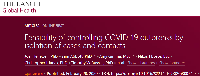 [1] Feasibility of controlling COVID-19 outbreaks by isolation of cases and contacts