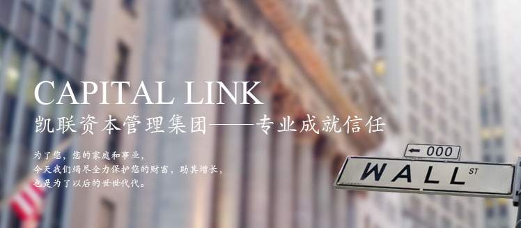 凯联资本管理集团(Capitallink group,简称“凯联资本”)是由凯联国际在中国大陆投资设立,并在中国证监会备案登记的资产管理机构。作为全球领先的资产管理集团,在北美和亚太地区市场有着近15年资产和财富管理经验。 凯联资本管理集团致力于提供稳健而专业的全球资产管理和财富管理服务,其主要业务包括:资产管理和财富管理业务。依托集团强大的金融管理和金融产品研发团队,开发有竞争力的金融产品推向市场;凯联资本管理集团面向金融机构、企业和高净值人群等目标客户,提供境内外投融资、全球资产配置、境内外保险和保单质押、家族管理和二代教育等服务。博纳全球市场上最优秀的金融产品,为客户进行专业化全球化资产配置。 |