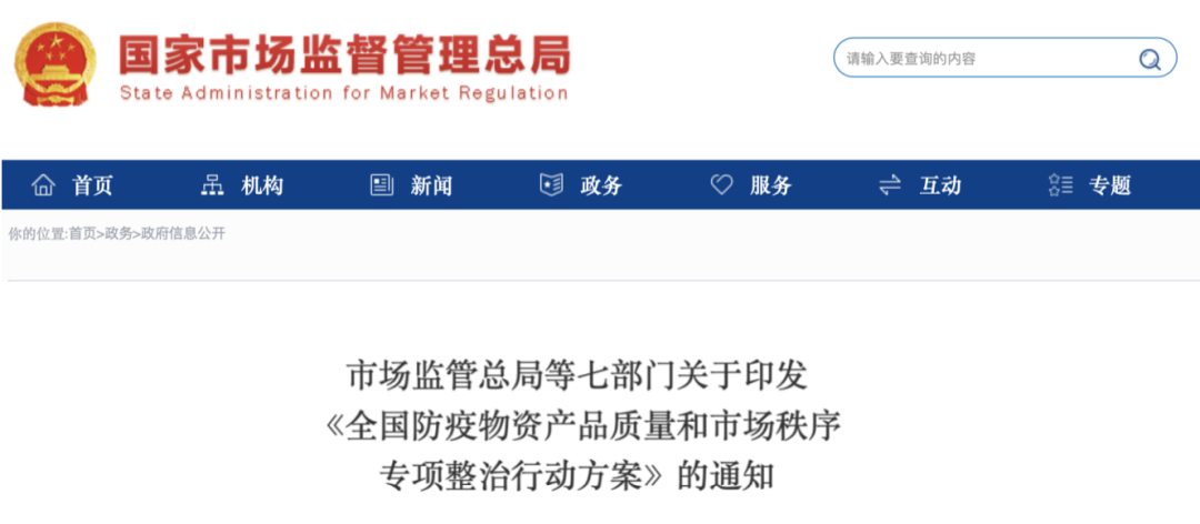整治行动在5月中下旬开始,6月底结束 全过程整治医疗器械 5月14日,市场监管总局、国家发展改革委、工业和信息化部、公安部、商务部、海关总署、药监局联合印发《全国防疫物资产品质量和市场秩序专项整治行动方案》的通知,要求全国各地区相关部门开展整治行动。