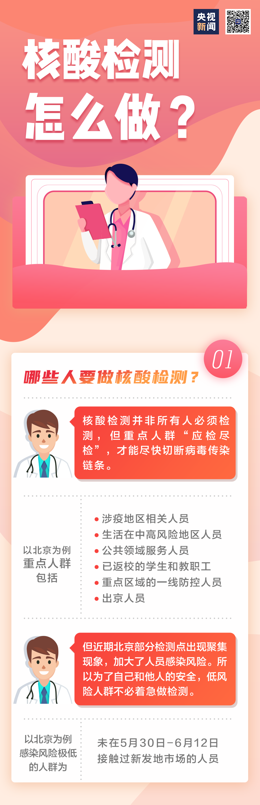 | 近日,北京迅速扩大增强检测力量,日核酸检测能力已提升至30万份以上。一份核酸检测不仅能让人安心,也能有效阻断疫情传播。那核酸检测怎么做?哪些人群需要测?检测结果迟迟不出,是否意味着情况不妙?一起看图,了解核酸检测那些事↓↓↓