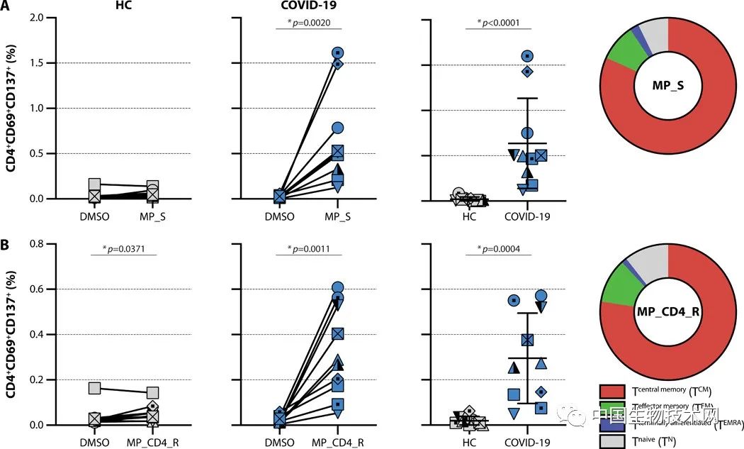 综上所述,这些新数据解决了一个鲜为人知的问题,即新冠病毒特异性T细胞的反应是否随时间的推移而因疾病严重程度的不同而有所不同,并有助于回答症状较严重的患者是否能够产生保护性的病毒特异性T细胞。