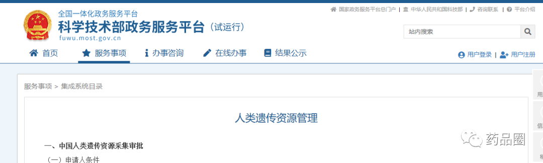 一、中国人类遗传资源采集审批 (一)申请人条件 具有法人资格的中方单位。 (二)审批条件 1.申请开展中国人类遗传资源采集活动应具备或符合如下条件: (1)具有法人资格; (2)采集目的明确、合法; (3)采集方案合理; (4)通过伦理审查; (5)具有负责人类遗传资源管理的部门和管理制度; (6)具有与采集活动相适应的场所、设施、设备和人员。 2.禁止性要求:申请开展中国人类遗传资源采集活动,不符合上述条件的,不予批准。 二、中国人类遗传资源保藏审批 (一)申请人条件 具有法人资格的中方单位。 (二)审批条件 1.申请开展中国人类遗传资源保藏活动应具备或符合如下条件: (1)具有法人资格; (2)保藏目的明确、合法; (3)保藏方案合理; (4)拟保藏的人类遗传资源来源合法; (5)通过伦理审查; (6)具有负责人类遗传资源管理的部门和保藏管理制度; (7)具有符合国家人类遗传资源保藏技术规范和要求的场所、设施、设备和人员。 2.禁止性要求:申请开展的人类遗传资源保藏活动,不符合上述条件的,不予批准。 三、中国人类遗传资源国际合作科学研究审批 (一)申请人条件 1.具有法人资格的中方单位、外方单位。 2.港澳台组织及港澳台组织、个人设立或者实际控制的机构参照外方单位进行管理。 (二)审批条件 1.申请利用中国人类遗传资源开展国际合作科学研究应具备或符合如下条件: (1)对中国公众健康、国家安全和社会公共利益没有危害; (2)合作双方具有开展相关工作的基础和能力; (3)合作研究目的和内容明确、合法,期限合理; (4)合作研究方案合理; (5)拟使用的人类遗传资源来源合法,种类、数量与研究内容相符; (6)通过合作双方各自所在国(地区)的伦理审查; (7)研究成果归属明确,有合理明确的利益分配方案。 申请利用中国人类遗传资源开展国际合作科学研究,应当由中国境内依法成立的法人单位办理报批手续。同一国际合作科学研究,涉及两个以上中国境内法人单位的,应当合并办理报批手续,不得拆分报批。 利用中国人类遗传资源开展国际合作,双方均应通过各自所在国(地区)的伦理审查。对于开展多中心临床试验的,医疗机构(组长单位)通过伦理审查即可办理报批手续;参与医疗机构在组长单位取得行政许可后,将本单位伦理审查认可或同意的批件及本单位签字盖章的承诺书提交至科学技术部,即可开展国际合作临床试验。 对于已获得许可利用中国人类遗传资源开展国际合作涉及变更的,获得变更审批决定前可按照原获批事项开展研究,变更的事项应在获得同意变更审批决定后方可开展。 2.利用中国人类遗传资源开展国际合作科学研究,确需将中国人类遗传资源材料运送、邮寄、携带出境的,应符合《中华人民共和国人类遗传资源管理条例》第二十七条规定的条件,并可以在国际合作科学研究申请中列明出境计划,一并提出申请。 3.禁止性要求:申请利用中国人类遗传资源开展国际合作科学研究,不符合1 所列条件的,不予批准 四、中国人类遗传资源材料出境审批 (一)申请人条件 具有法人资格的中方单位。 (二)审批条件 1.申请将中国人类遗传资源材料运送、邮寄、携带出境应具备或符合如下条件: (1)对我国公众健康、国家安全和社会公共利益没有危害; (2)具有法人资格; (3)有明确的境外合作方和合理的出境用途; (4)人类遗传资源材料采集合法或者来自合法的保藏机构; (5)通过伦理审查; 2.禁止性要求:申请将中国人类遗传资源材料运送、邮寄、携带出境,不符合上述条件的,不予批准。 五、中国人类遗传资源国际合作临床试验 适用于为获得相关药品和医疗器械在我国上市许可,在临床机构利用我国人类遗传资源开展国际合作临床试验、不涉及人类遗传资源材料出境的。 “在临床机构”包括: (一)所涉及的人类遗传资源仅在临床机构内采集、检测、分析和剩余样本处理等; (二)所涉及的人类遗传资源在临床机构内采集,由临床机构委托的单位进行检测、分析和剩余样本处理等。临床机构应与其委托的单位签署正式协议,明确委托检测和分析的人类遗传资源材料的种类、数量、检测内容、转运方式、剩余样本和数据信息处理方式等,并对其委托的活动负责。 六、中国人类遗传资源信息对外提供或开放使用 适用于将人类遗传资源信息向外国组织、个人及其设立或者实际控制的机构提供或开放使用。 申请单位应为中方单位。 |