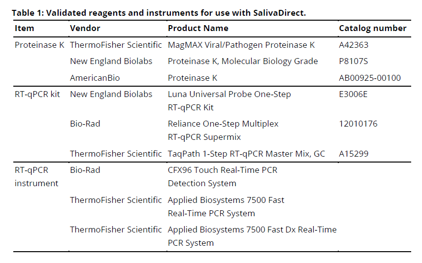 ▲经过验证适用于SalivaDirect流程的试剂和仪器(图片来源:参考资料[3])
