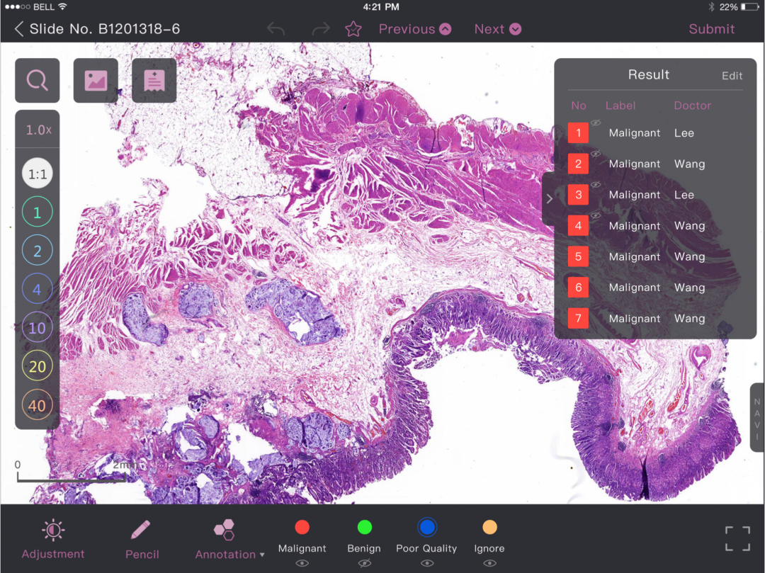 图2. 基于iPad和Apple Pencil的标注工具,能够快速完成病理影像的标注过程,并内置严格的审核流程