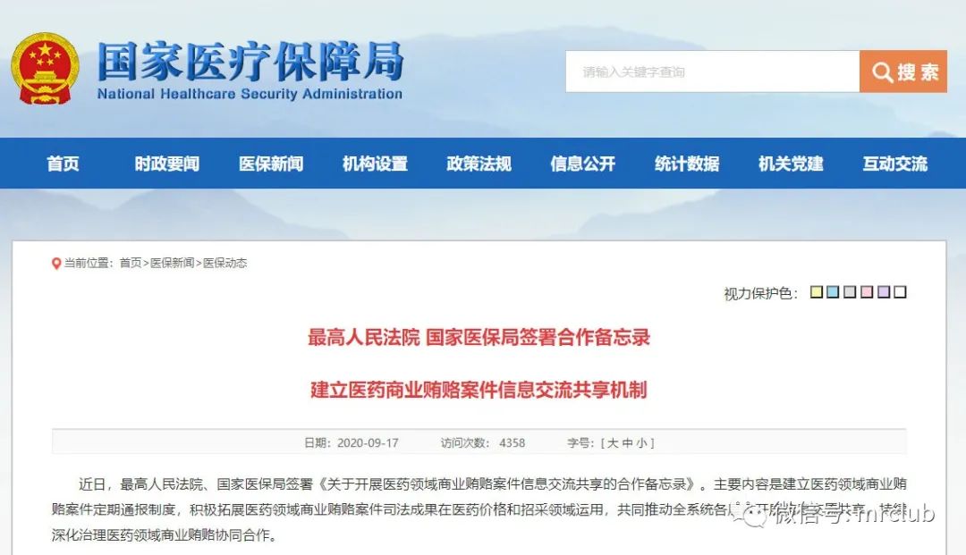 最近,最高人民法院、国家医保局、中纪委相继发文,多个信息渠道显示,打击医药商业贿赂将从顶层设计开始推动,信息共享,强化监督,深入治理! 9 月 17 日,国家医保局发布消息,最高人民法院、国家医保局签署《关于开展医药领域商业贿赂案件信息交流共享的合作备忘录》。主要内容是建立医药领域商业贿赂案件定期通报制度,积极拓展医药领域商业贿赂案件司法成果在医药价格和招采领域运用,共同推动全系统各层级开展信息交流共享,持续深化治理医药领域商业贿赂协同合作。 按照《中共中央国务院关于深化医疗保障制度改革的意见》要求,国家医保局一直在积极推进建立医药价格和招采信用评价制度建设,9 月 16 日,国家医保局印发指导意见,要求各地于2020年底前建立并实施信用评价制度,在国家医疗保障局和相关部门的合作框架下,以医药商业贿赂等为切入点,依托医药集中采购市场,加大治理医药商业贿赂的力度,推动医药企业依法诚信经营,促进医药价格合理回归,更好保障人民群众病有所医。 国家医保局价格招采司在答记者问中,以药品回扣问题为例,曾提到一些数据:“根据公开可查的法院判决文书统计,2016年-2019年间全国百强制药企业中有超过半数被查实存在给予或间接给予回扣的行为,其中频率最高的企业三年涉案20多起,单起案件回扣金额超过2000万元。医药上市公司平均销售费用率超过30%。” 看来,最高人民法院、国家医保局签署合作备忘录后,再有此类案件势必将计入医保局企业信用评价,直接影响到带量采购等工作。 并且,9 月 18 日,中纪委国家监委官网发布要闻《纪检监察机关强化医疗领域监督,紧盯风险点斩断利益链》,引述多省具体案例,指出纪检监察机关应立足职能职责,坚持问题导向,全面梳理医疗领域廉政风险点和高风险环节,坚决斩断医疗领域腐败利益链,推动医疗行业祛除歪风邪气。 比如,以四川成都自 6 月份以来的专项整治为例,据成都市纪委监委有关负责人介绍,此次专项整治重点聚焦私自采购、开单提成、过度使用、先使用后入库、商业统方等违规违法行为,目前已在官方网站、微信公众号、医院醒目位置等开设举报专区,以此广泛收集问题线索,有的放矢整治医疗领域乱象。 三天的时间,国家三大机构相继发文,是该引起某些企业的重视了。 |