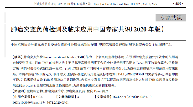 中国首个TMB检测及临床应用专家共识出炉,离合规不远了...... 2020年的11月11日,《中国癌症防治杂志》正式发表了《肿瘤突变负荷检测及临床应用中国专家共识(2020年版)》,我们一起简单领略下该TMB专家共识的主要8条共识要点: 首先,TMB作为近几年免疫治疗疗效敏感性评估的关键生物标志物,已成为临床基因检测的标配,但检测方法、阈值和报告格式缺乏统一标准。此TMB专家共识结合中国实践,为临床提供了8条TMB检测及应用共识推荐: 1 2 专家共识2:tTMB是一个新兴的独立ICIs 治疗疗效预测标志物,与多种肿瘤类型ICIs 单药或两种ICIs联合治疗的疗效相关,已证实可作为泛癌种免疫治疗疗效的预测标志物。推荐既往标准治疗后疾病进展且没有更好替代疗法的实体瘤患者,尤其是高TMB的患者进行TMB检测,有助于扩大免疫治疗获益人群。中国人群TMB的独立预测价值仍需更多前瞻性研究验证。 3 专家共识3:目前研究证据显示在NSCLC中bTMB与tTMB 具有显著相关性,但bTMB检测无统一标准。多项回顾性研究发现高bTMB与NSCLC患者接受单药ICIs治疗获益显著相关,但尚未获得高级别前瞻性临床研究证实。 4 专家共识4:推荐使用近期石蜡包埋肿瘤组织样本进行tTMB 检测,待检测组织应首先完成病理质控并确保恶性肿瘤细胞数能够满足检测要求。为过滤胚系突变对后续tTMB评估的影响,应采集患者外周血、唾液或正常组织作为对照样本。建议优先采用NMPA批准上市的核酸提取试剂盒进行基因组DNA提取,tTMB检测实验室应根据实际需求建立合适的DNA样品质控标准和操作流程,对待测DNA样品纯度、浓度及片段化程度进行严格质控。肿瘤原发灶与远处转移灶组织均可用于tTMB评估。 5 专家共识5:采用靶向测序Panel进行TMB 评估时,建议与WES评估的TMB进行一致性评价。靶向测序Panel覆盖范围原则上不应<1.0Mb,最低有效测序深度应≥500X。建议进行TMB检测的靶向测序Panel尽可能涵盖患者更多的其他分子遗传信息,包括可指导靶向治疗的驱动基因突变、与基因变异产生相关的免疫治疗正向预测因子以及可能的免疫治疗负向预测因子。目前已有多款NGS测序仪获国家NMPA批准用于临床基因检测,不同实验室可依据样本量、时效要求选择不同测序平台。 6 专家共识6:基于靶向测序Panel的TMB检测应以WES检测为金标准,纳入影响蛋白质编码的体细胞突变,应保证检出突变频率>5%的体细胞突变,以保证TMB检测值的准确性和稳定性;应依托ICIs疗效随访数据库对基因组比对和突变检出算法开展标准化研究;Panel检测区域可影响TMB值,应通过至少1 000例WES数据予以校正。同时建议使用对照样本过滤胚系变异。 7 8 看看自己处在注册申报哪个阶段呢 参考资料: 1.中国抗癌协会肿瘤标志专业委员会遗传性肿瘤标志物协作组,中国抗癌协会肿瘤病理专业委员会分子病理协作组,《肿瘤突变负荷检测及临床应用中国专家共识(2020年版)》,《中国癌症防治杂志》. |