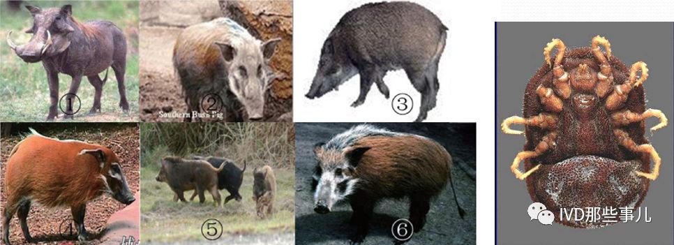 猪科动物和蜱(钝缘蜱)是ASFV的易感动物,家猪和欧洲野猪高度易感,死亡率100%,无明显的品种、年龄和性别差异。疣猪、薮猪等非洲本土野猪感染后无临床症状,可作为ASFV的储存宿主使病毒在自然界长期存在。蜱类是重要的储存宿主和传播媒介。