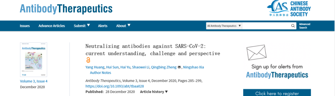 摘要: 近日,自厦门大学公共卫生学院夏宁邵教授团队的高级工程师郑清炳博士以通讯作者身份在华人抗体协会旗下期刊、牛津大学出版社出版的Antibody Therapeutics发表了一篇原文标题为“Neutralizing antibodies against SAR ...