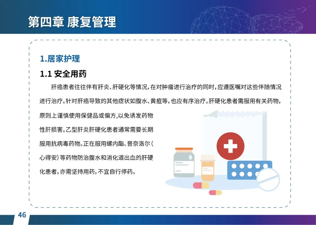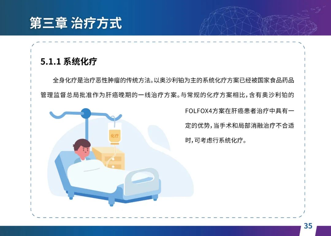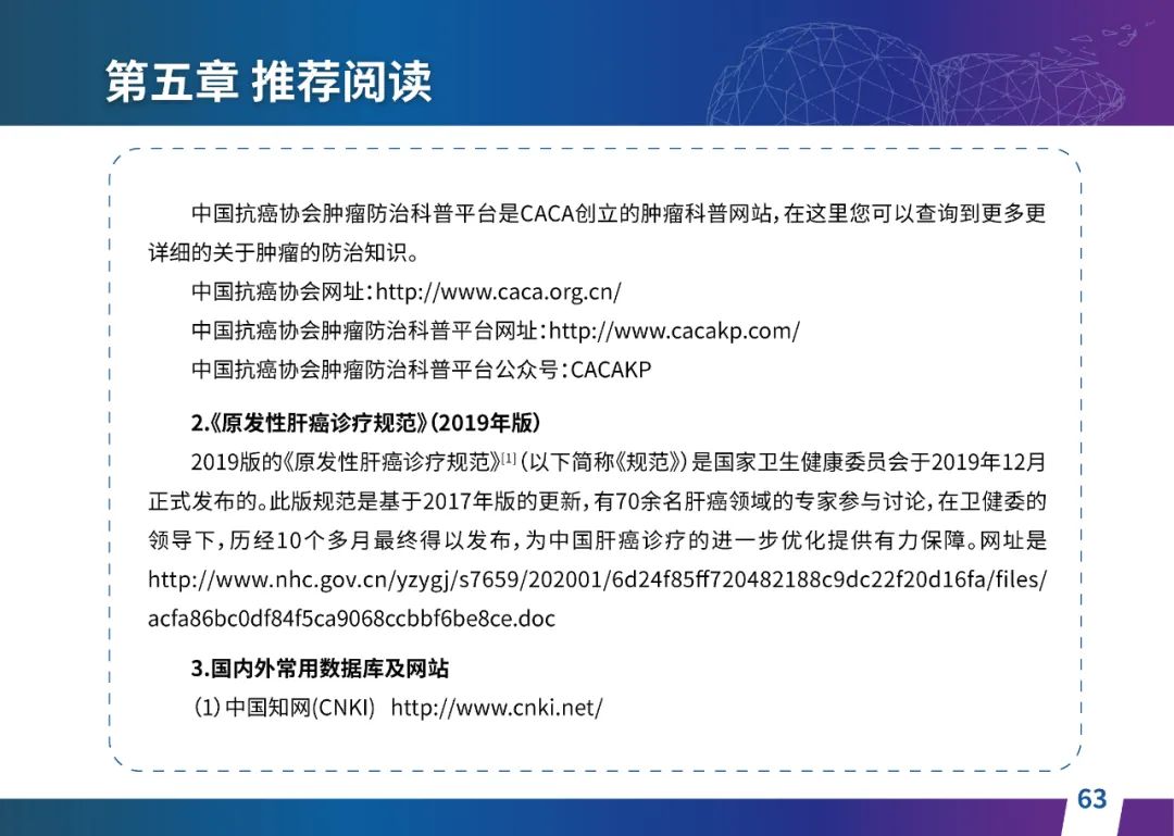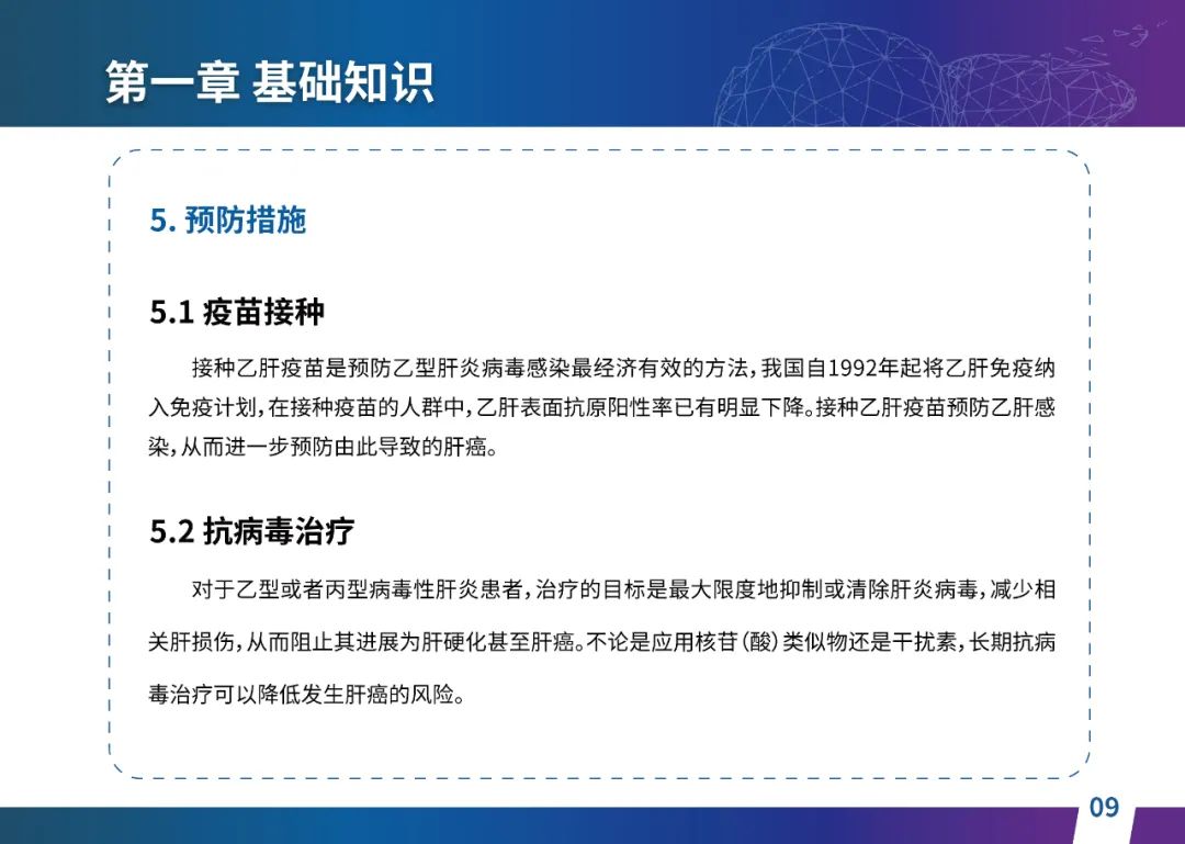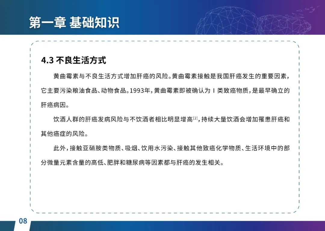 关于肝癌筛查手段,指南也提出了建议:肿瘤标志物血清甲胎蛋白(AFP)、异常凝血酶原(PIVKA-II)和肝脏超声检查是早期筛查的主要手段。对于肝脏超声和血清AFP筛查异常者,动态增强CT和多模态MRI扫描是明确诊断的首选影像学检查方法。建议高危人群每半年至少行一次血液AFP、异常凝血酶原(PIVKA-II)化验检查及肝脏B超检查,如果出现症状再去检查那么大部分患者都是中晚期。值得注意的是,基于ctDNA的液体活检肝癌早筛技术也被纳入指南建议:“ctDNA(循环肿瘤DNA)是由肿瘤释放至外周血的DNA片段,能够反映肿瘤的基因组信息,可用于早期诊断、监测疾病进展、评估治疗效果以及判断患者预后等。近年来,基于ctDNA的液体活检在肝癌早筛中展现出重要价值。突变和甲基化的共同检测及其与蛋白生化等传统标志物的联合应用,可以获得更好的筛查效果。有报道称,ctDNA用于肝癌早期筛查的灵敏度和特异度均优于血清AFP。同时检测多个指标的新型液体活检产品,已经在肝癌的早期筛查中显示出较好的应用场景。”《健康中国2030纲要》提出“推动基层肿瘤防治科普,提升癌症五年生存率,开展全民肿瘤防治科普宣传,建立健康生活方式,远离癌症高危因素;推动基层癌症早诊早治的科普宣传和技术突破”,撰写患者指南有助于指导国家癌症防控目标的落地,开展肿瘤防治科普宣传有利于全民健康。