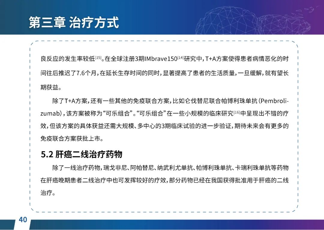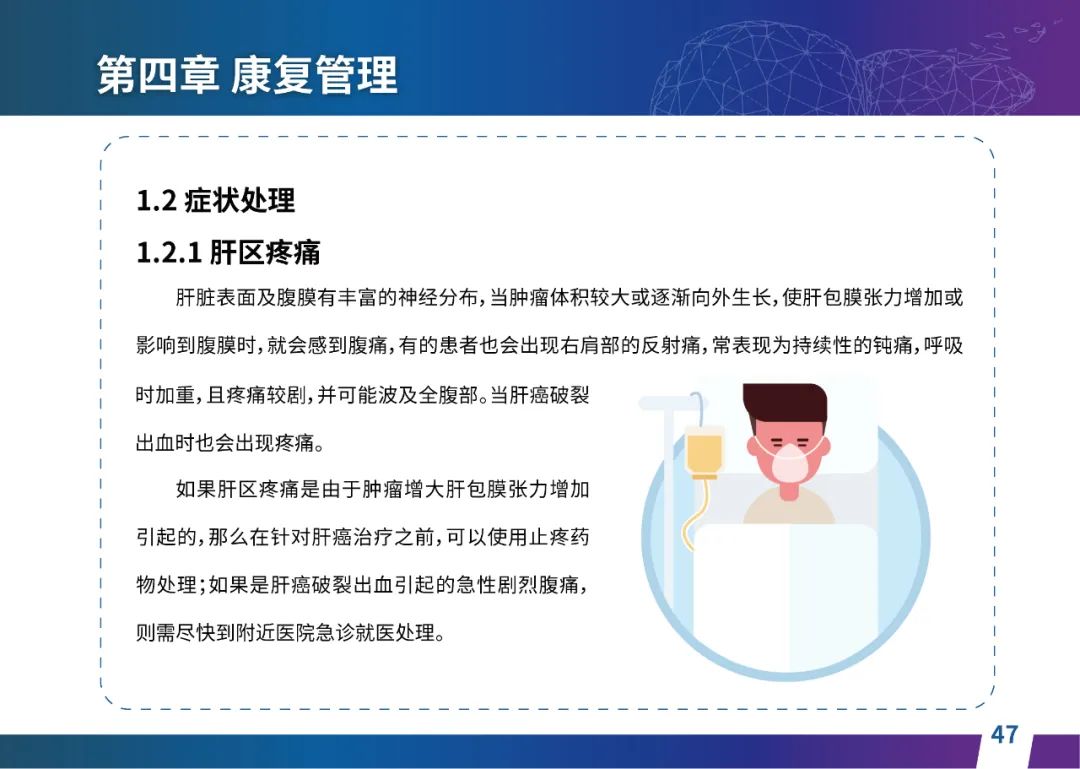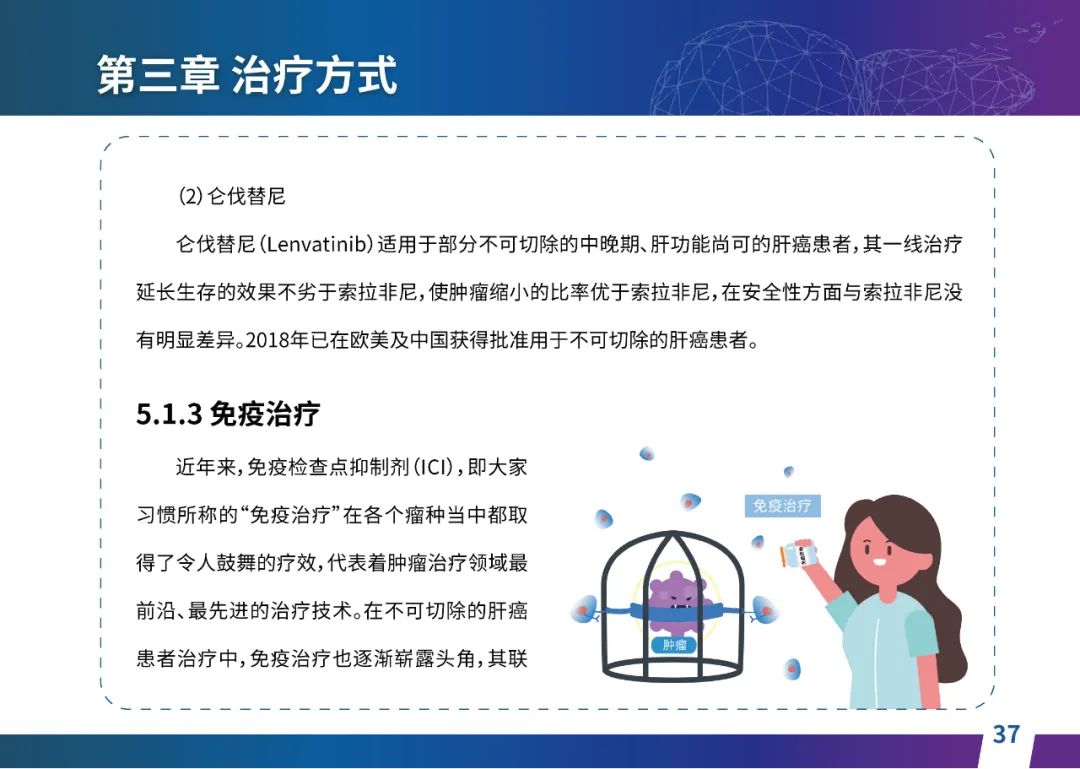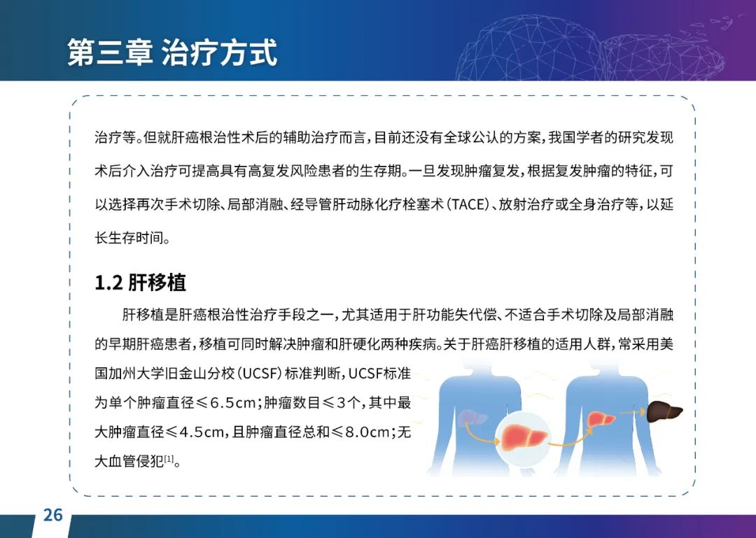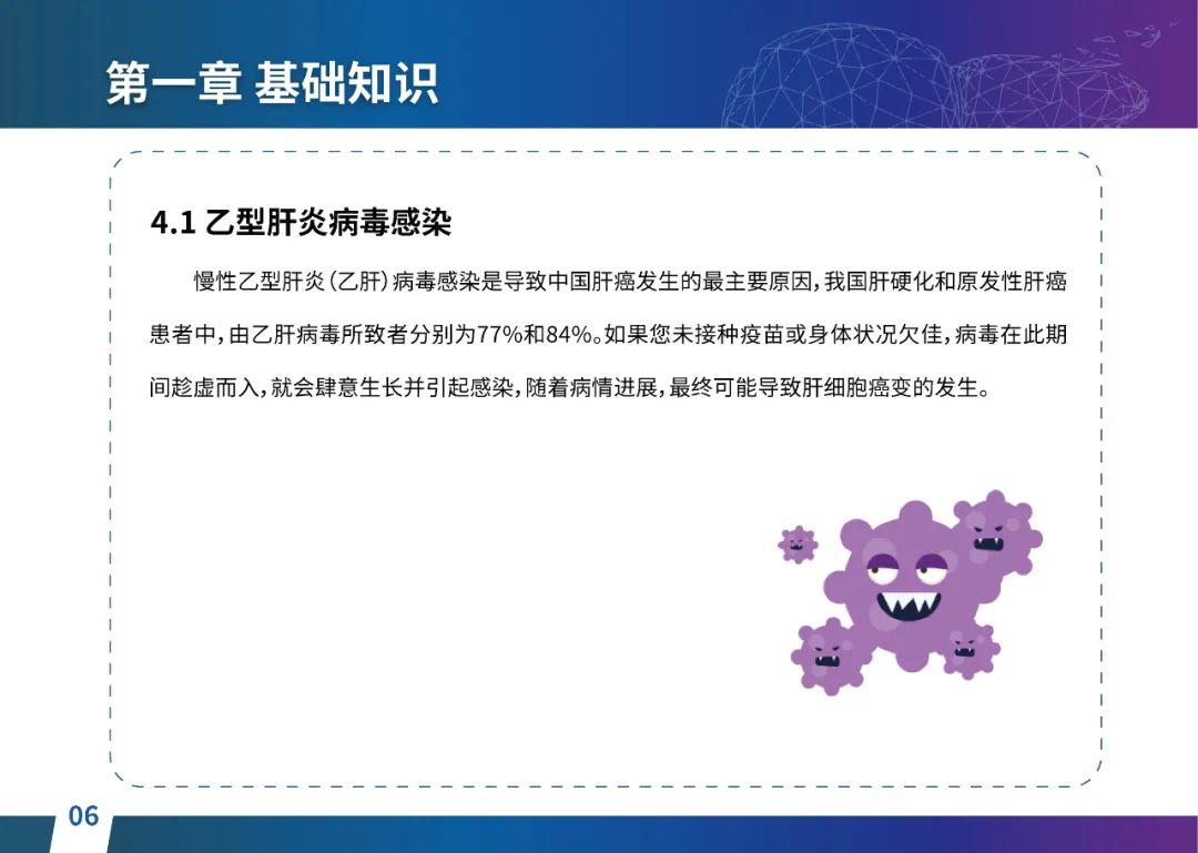 关于肝癌筛查手段,指南也提出了建议:肿瘤标志物血清甲胎蛋白(AFP)、异常凝血酶原(PIVKA-II)和肝脏超声检查是早期筛查的主要手段。对于肝脏超声和血清AFP筛查异常者,动态增强CT和多模态MRI扫描是明确诊断的首选影像学检查方法。建议高危人群每半年至少行一次血液AFP、异常凝血酶原(PIVKA-II)化验检查及肝脏B超检查,如果出现症状再去检查那么大部分患者都是中晚期。值得注意的是,基于ctDNA的液体活检肝癌早筛技术也被纳入指南建议:“ctDNA(循环肿瘤DNA)是由肿瘤释放至外周血的DNA片段,能够反映肿瘤的基因组信息,可用于早期诊断、监测疾病进展、评估治疗效果以及判断患者预后等。近年来,基于ctDNA的液体活检在肝癌早筛中展现出重要价值。突变和甲基化的共同检测及其与蛋白生化等传统标志物的联合应用,可以获得更好的筛查效果。有报道称,ctDNA用于肝癌早期筛查的灵敏度和特异度均优于血清AFP。同时检测多个指标的新型液体活检产品,已经在肝癌的早期筛查中显示出较好的应用场景。”《健康中国2030纲要》提出“推动基层肿瘤防治科普,提升癌症五年生存率,开展全民肿瘤防治科普宣传,建立健康生活方式,远离癌症高危因素;推动基层癌症早诊早治的科普宣传和技术突破”,撰写患者指南有助于指导国家癌症防控目标的落地,开展肿瘤防治科普宣传有利于全民健康。