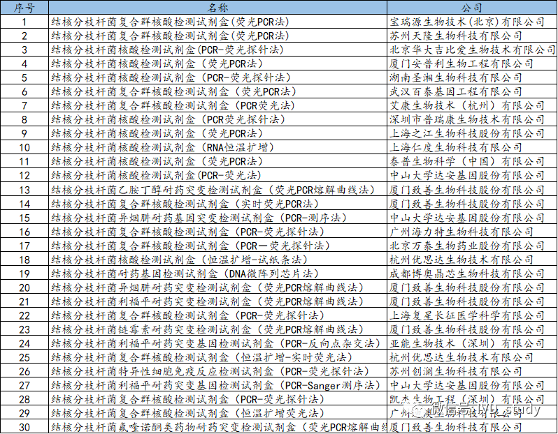 NMPA以“结核”为关键字搜索的分子诊断产品