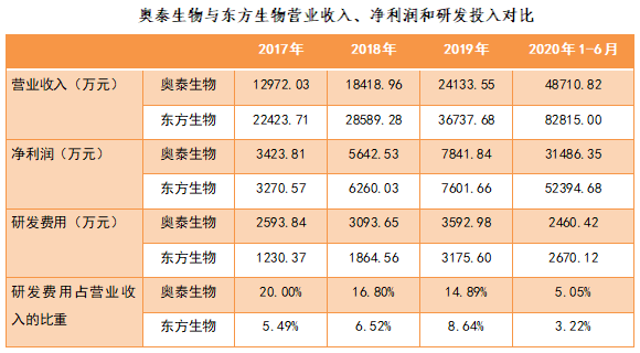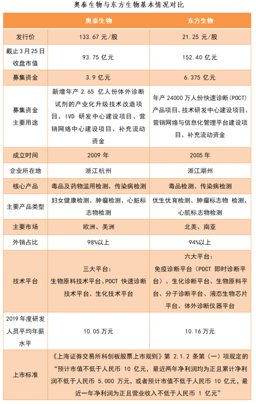 来源:小桔灯网 作者:面气灵 3月25日,体外诊断企业奥泰生物科创板上市第一天,报收173.94元,涨幅30.13%。 奥泰生物新股发行价为133.67元/股,本次计划募集资金3.98亿元,实际募资18亿元。募资资金主要用于新增年产2.65 亿人份体外诊断试剂的产业化升级技术改造项目、IVD 研发中心建设项目、营销网络中心建设项目、补充流动资金。 2月5日,体外诊断企业东方生物上市第一天报收145.98元,涨幅586.96%,打破科创板新股上市首日涨幅纪录。东方生物2020年度业绩快报显示,2020年营业总收入326202.88万元,比上年同期增长787.92%,扣非净利润166953.21万元,比上年同期增长2096.27%。 奥泰生物和东方生物的基本情况非常相似,公司都位于医疗器械大省——浙江省。主要生产POCT产品,外销收入是公司收入的主要来源。从两者的主营业务、核心产品、研发技术、市场、上市标准来看,都高度一致。 销售模式和业务结构 … 奥泰生物与东方生物的销售模式和业务结构相似,均以外销为主,奥泰生物外销占比在98%以上,东方生物外销占比在94%以上,且均主要采取 ODM 业务模式。奥泰生物主要以欧洲、亚洲市场为主,收入占比合计85%以上,在欧美市场的销售占比超过50%,且占比不断提升,在2020年上半年超过了80%;东方生物主要以北美、南亚市场为主,收入占比合计约 80%以上,并在未来发展目标中有明确的国内市场开拓计划。 技术平台 … 奥泰生物与东方生物在生物原料技术平台、POCT 快速诊断技术平台、生化技术平台等方面都有相关布局。另外,奥泰生物已基本完成了化学发光仪和两个系列化学发光检测产品的初步开发工作,已形成以微流控为基础结合恒温扩增技术、实时定量PCR技术等多项PCR分子诊断技术。同时,东方生物将分子诊断、液态生物芯片、诊断仪器作为战略发展技术平台。 研发人员薪酬水平 … 受企业规模和所处发展阶段等因素影响,奥泰生物与东方生物整体薪酬水平偏低,2019年度研发人员平均年薪水平低于行业平均30%左右。 上市标准 … 奥泰生物与东方生物均选择适用《上海证券交易所科创板股票上市规则》第 2.1.2 条第(一)款规定的市值财务指标:“预计市值不低于人民币 10 亿元,最近两年净利润均为正且累计净利润不低于人民币 5,000 万元,或者预计市值不低于人民币 10 亿元,最近一年净利润为正且营业收入不低于人民币 1 亿元。”作为首次公开发行股票并在科创板上市的具体上市标准。 奥泰生物与东方生物的产品结构相似,均以毒品检测、传染病检测、妇女健康检测类为主,但在细分产品结构存在一定的差异。 奥泰生物较东方生物毛利率高十个百分点以上,一是奥泰生物抗原抗体自我供给量占比相对较高,自产抗原抗体的成本低于外购抗原抗体的成本;二是两者在细分产品结构和产品销售区域上存在一定差异。 奥泰生物营业收入和净利润保持着持续快速增长的趋势。 2017 年、2018年、2019年和2020年1-6月公司营业收入分别为 12972.03万元、18418.96万元、24133.55万元和 48710.82万元,2018年及2019年增幅分别达到41.99%和31.03%;净利润分别为3423.81万元、5642.53万元、7841.94万元和31486.35万元,2017年至 2019 年复合增长率达51.34%。 奥泰生物研发投入逐年增长,但研发费用占营业收入的比重在逐年递减,2017年-2019年研发投入占比较高,是由于公司规模与同行业上市公司相比较小。2020年上半年公司的收入规模暴增,而研发费用同比增幅不高,因此2020年1-6 月研发投入占比较低。东方生物研发费用的投入逐年增加,2017年-2019年研发费用占营业收入的比重分别为5.49%、6.52%、8.64%,呈缓慢上升趋势。 新冠检测试剂产品情况 奥泰生物于2020年2月成功研制开发出新型冠状病毒(2019-nCoV IgG/IgM)抗体检测试剂盒。2020 年度新冠病毒抗体检测产品销量 6166.63 万人份,销售额达90851.27万元,对主营业务收入贡献率达80.04%,成为公司2020年主导产品。与万孚生物、安旭生物、万泰生物等新冠病毒抗体检测试剂生产厂家相比,奥泰生物的新冠病毒抗体检测试剂销售收入相对较高。 与万孚生物、安旭生物类似,奥泰生物也采取胶体金抗体检测技术,技术路线较为单一;而东方生物、万泰生物具有抗体、核酸等各类技术路线的新冠检测产品。 结语 新冠疫情导至的业绩增长具有偶发性,尽管全球疫情形势依旧严峻,新增确诊数量仍处于高位,但突发公共卫生事件持续时间存在不确定性,未来疫情在全球得到有效控制后,新型冠状病毒检测相关产品的销量将会大幅下降。同时越来越多国内企业布局新冠病毒检测市场,海外竞争对手复工复产及产能扩张,导至市场供给增加,产品利润空间被压缩。因此,为了保持长久的市场竞争力,无论是奥泰生物还是东方生物,都必须根据市场需求,差异化积极创新研发新产品,从而满足不同应用领域对 POCT产品的需求,才能增强公司市场影响力,在全球市场占据一席之地。奥泰生物与东方生物未来发展如何,我们也将持续关注。 注:本文所有数据来源于上市公司年度报告、招股说明书等证券交易所公开资料 |