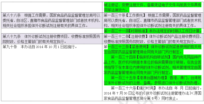 与原办法相比,本办法参照《器械办法》对共性内容进行了修订,此外,体外诊断试剂特殊内容主要变化如下: