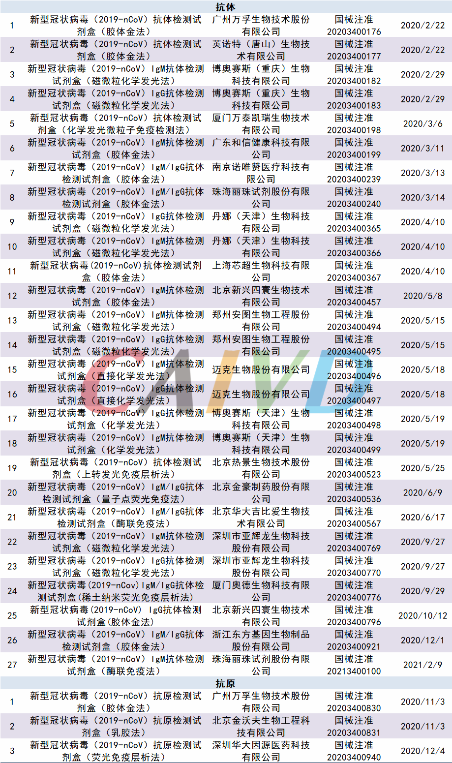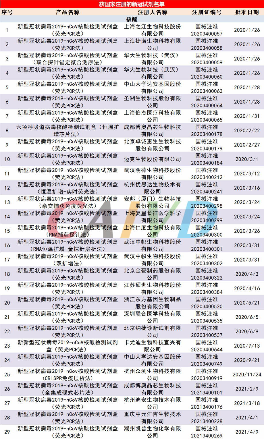 获得国内注册证的新型冠状病毒检测试剂企业名单: