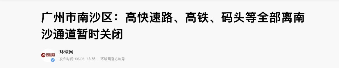 自2021年6月5日14时起,全区城市公交、地铁、轮渡、长途客运暂停运营;无特殊原因,市民不要离开,高快速路、高铁、码头等全部离南沙通道暂时关闭,恢复时间另行通告。