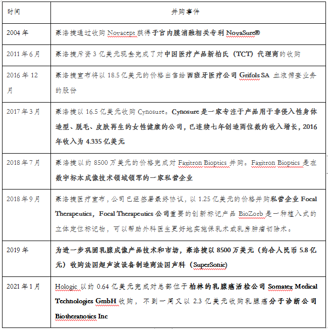 这是今年的Hologic的第四笔收购交易。早在一月份Hologic以 0.64亿美元的价格收购了乳腺癌活检公司Somatex,二月份以 2.32 亿美元收购了柏林乳腺癌分子诊断公司Biotheranostics,三月份以 1.53 亿美元收购了比利时分子诊断分析和表观遗传学产品开发公司 Diagenode 的收购。(此前报道链接:29.28亿收购的背后:揭秘隐形影像巨头的布局)