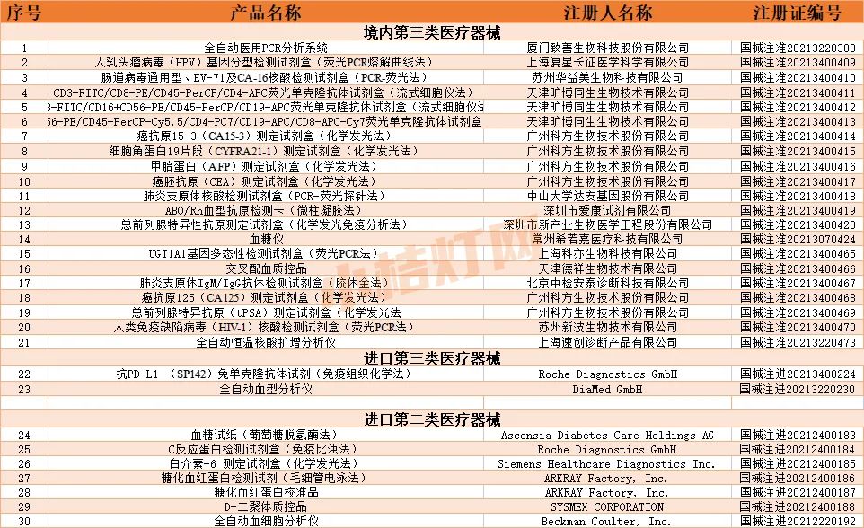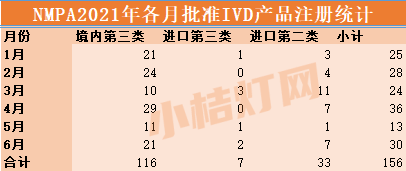 2021年6月份,NMPA共批准注册IVD产品30个,具体如下:
