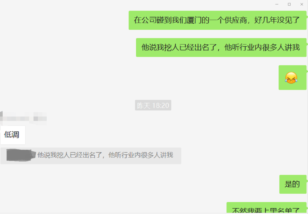前阵子,一家体外诊断行业上市公司的HR经理凡尔赛式聊天,他说“今年我估计是被挖最多的一年了”,好几家上市公司都来挖,还顺手给我发了两张截图。 HR凡尔赛对话之一 HR凡尔赛对话之二 一般来说,如果你在一个行业混了5年以后,都没有人来挖你,那说明你比较普通。
