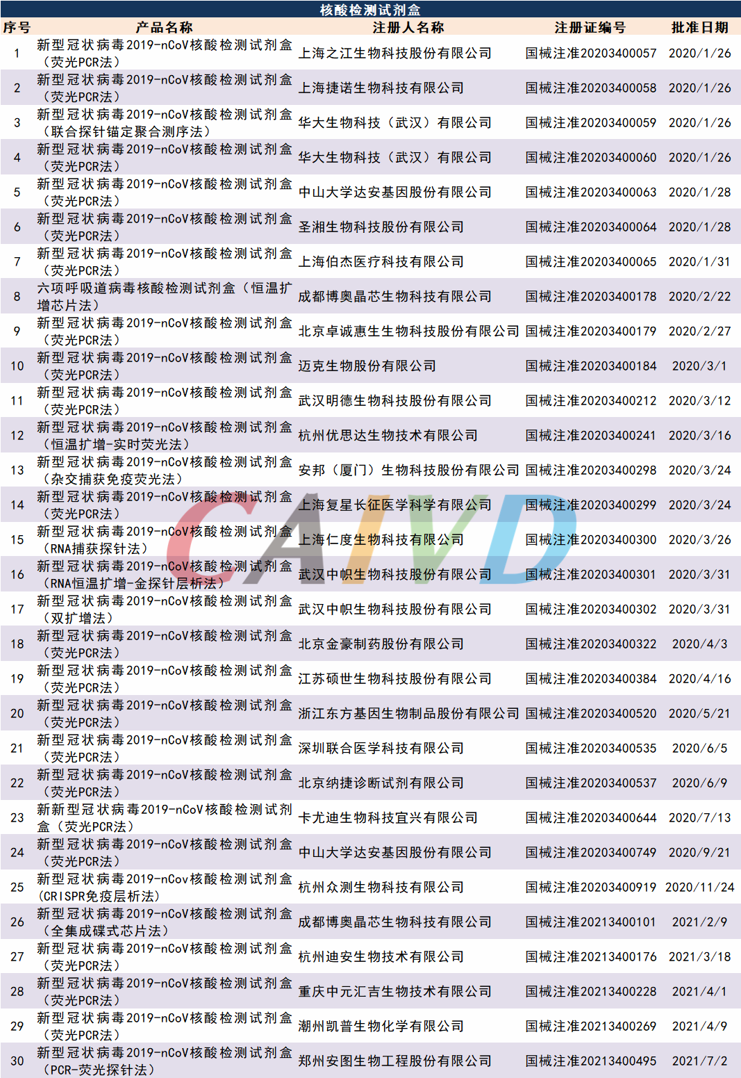 据国家卫健委消息,7月26日0—24时,31个省(自治区、直辖市)和新疆生产建设兵团报告新增确诊病例71例,其中境外输入病例40例(云南19例,广东13例,上海4例,江苏3例,四川1例),本土病例31例(均在江苏南京)。新增无症状感染者20例,其中境外输入17例,本土3例(均在辽宁)。截至7月26日24时,南京本轮疫情累计报告106例新冠感染者,引起这次疫情的病毒毒株已锁定为德尔塔毒株。 7月,新获批两款新冠检测试剂盒,分别是安图生物和艾维可生物。截至目前,国内44家企业的61个新冠检测试剂盒获批注册,其中30个核酸检测试剂,28个抗体检测试剂盒,3个抗原检测试剂盒。详细如下: 来源:综合国家卫健委等 |