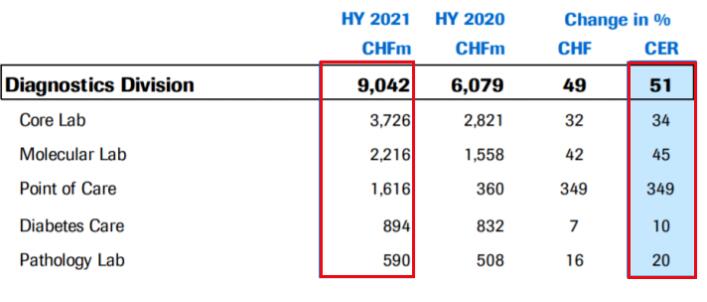 分子诊断营收22.16亿瑞郎(+45%),基于新冠病毒检测的需求,病毒学和POC分子诊断分别大涨60%、318%;