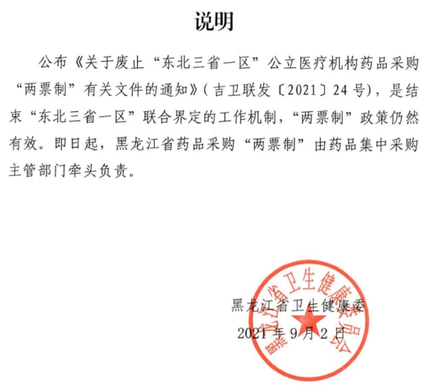 摘要: 9月2日,黑龙江省卫健委下发《关于废止“东北三省一区”公立医疗机构药品采购“两票制”有关文件的说明》,紧急表态:两票制仍然执行,只不过是按照以前文件的规定,东北三省和内蒙古两票制认定由吉林省卫健委来做, ...