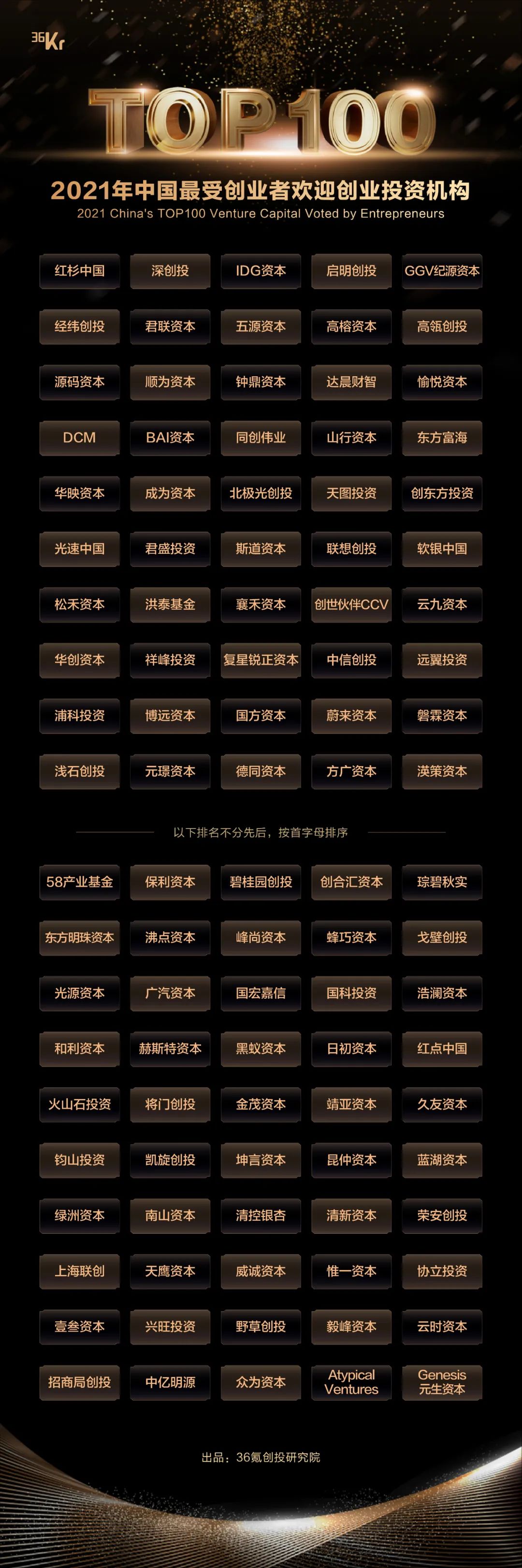 2021年中国最受创业者欢迎创业投资机构TOP100