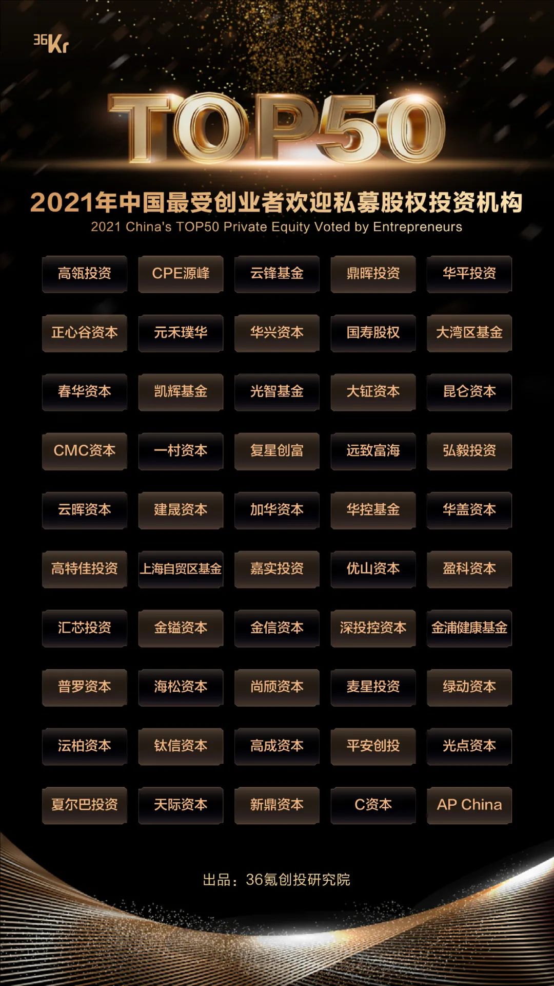 2021年中国最受创业者欢迎私募股权投资机构TOP50