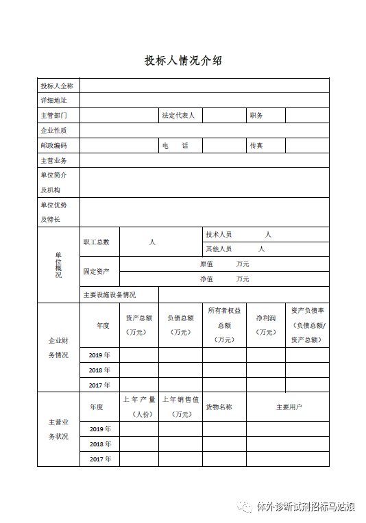 非固有的企业资料包括: ISO【医疗器械届ISO证书科普】 (1)环境管理体系认证证书(ISO14001); (2)质量管理体系认证证书(ISO9001); (3)职业健康安全管理体系认证证书(OSHASI8001); (4)医疗器械质量管理体系认证证书(ISO13485); (5)职业健康安全管理体系认证证书(ISO45001); (6)医学实验室认证证书(ISO15189); (7)参考实验室认可证书(CNAS) 1、银行基本户信息及开票信息(银行基本户信息包括:开户单位,账号,开户行;开票信息包括:单位名称,纳税人识别号,地址、电话,开户行及账号) 2、企业信用报告/征信报告(中国人民银行备案的第三方征信机构出具)(一般找公司的财务部门申请) 3、信用查询(一般是指在“信用中国”网站上进行的政府采购不良行为记录查询,统一社会信用代码查询,失信被执行人查询,重大税收违法案件当事人查询,上信用中国网址查询即可) 4、参加政府采购活动前三年内在经营活动中没有重大违法记录的书面申明(在“中国政府采购网 “上查询“政府采购严重违法失信行为信息记录名单”) 5、国家信用企业公示(年度报告)(在“国家企业信用信息公示系统”查询下载,有年度报告,需管理员下载,财务人员可下载,仅是信息公示可直接下载) 6、纳税信用评级(一般是去“国家税务总局”里的“纳税信用A级纳税人名单”里面查询) 7、完税凭证(找公司财务税务负责人提供) 8、信用中国网站及中国政府采购网信用记录查询报告(“信用中国”网站查询报告一般是“失信被执行人、重大税收违法案件当事人名单、政府采购严重违法失信行为”这三项查询,“中国政府采购网”信用记录查询一般是“政府采购严重违法失信行为信息记录名单”查询) 9、无行贿受贿记录(“中国裁判文书网”无行贿受贿记录截图) 10、 无重大违法犯罪记录声明(看要求是需检察院机关文件,还是需要药监局开局无犯罪记录证明,或者是单位自拟文件,抑或是按招标文件模板即可,需检察院机关开具需要自行到检察院申请,如是药监局开具就要咨询公司相关部门人员去药监局申请,如按招标文件出具就直接出具了) 11、 一般纳税人或小规模纳税人证明文件(出示增值税纳税申报表12月的总表即可(适用于一般纳税人)) 12、 近两年的财务报表(提供汇总报表数据即可)(就提供“合并的资产负债表、合并利润表、合并现金流量表”,看公司的年度审计报告就有)【新成立公司提供成立至今的月或季度财务报表复印件)或银行出具的资信证明;】 13、 依法缴纳税收和社会保障资金证明(依法缴纳税收可以提供公司增值税纳税申报表,广州个人社保参保证明可以在广州人力资源和社会保障局官网自行打印哦,其他地区可以咨询当地人社部或者百度一下哦。) 14、 汇款凭证(以电汇方式汇款,可以找单位申请对公付款,找财务部拿电汇底单,一般财务会有一个电子版的对公转账付款回单;以网银方式转账汇款,可以用私人账户的网上银行APP转账,在网上银行APP导出电子凭证) 15、 企业简介及品牌知名度介绍(企业简介可以有几种形式,文档表格版、文档文字介绍版、PPT简介版。文档表格版马姑娘会附上一个简单的格式以供参考,文字介绍版主要分几段说明一下公司的发展史、内外情况、软硬实力及销售业绩等,PPT简介可以做的华丽一些,这是公司市场部编辑的,我就不用多说了) 16、 厂家资格声明(按模板自行填写企业信息、财务数据信息、销售额业绩等数据) 17、 主要股东或出资人信息(找公司财务部门出具。主要内容包括股东名称、股东类型、身份证号码/统一社会信用代码、出资额、占全部股份比例) 18、 企业年度报告(财务提供) 19、 企业荣誉证书 20、 证明能力或业绩的材料(公司年度报告摘要,企业奖项荣誉专利证书,公司出具的书面业绩证明【指明销量及销售额】,投标业绩承诺函、发票合同业绩一览表,并附上相应的合同发票及中标通知书)