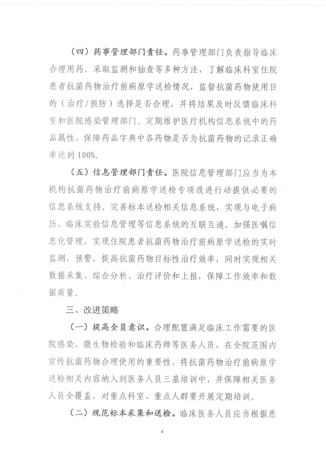 “提高住院患者抗菌药物治疗前病原学送检率” 专项行动指导意见